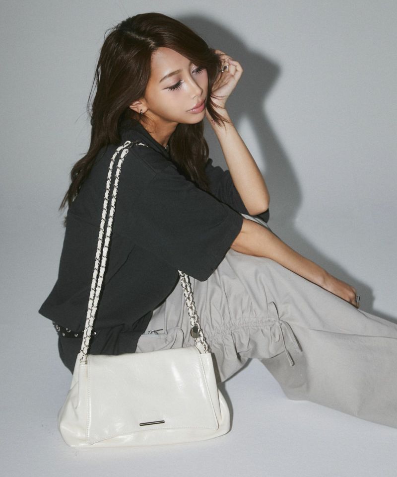 長めのチェーンストラップがアクセントになるハンドバッグ。