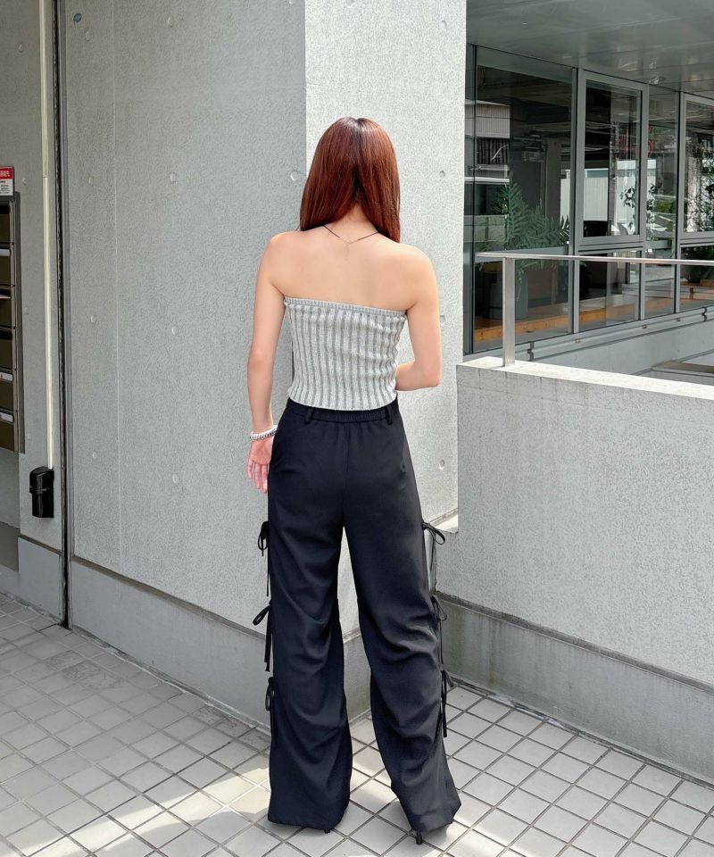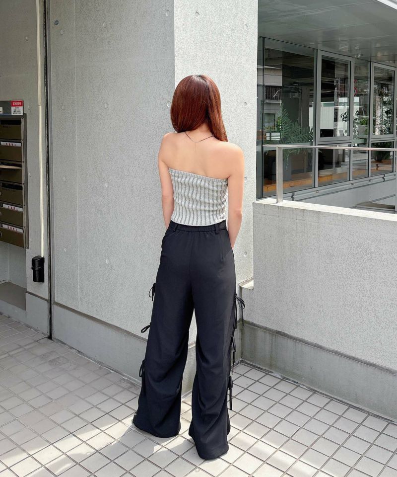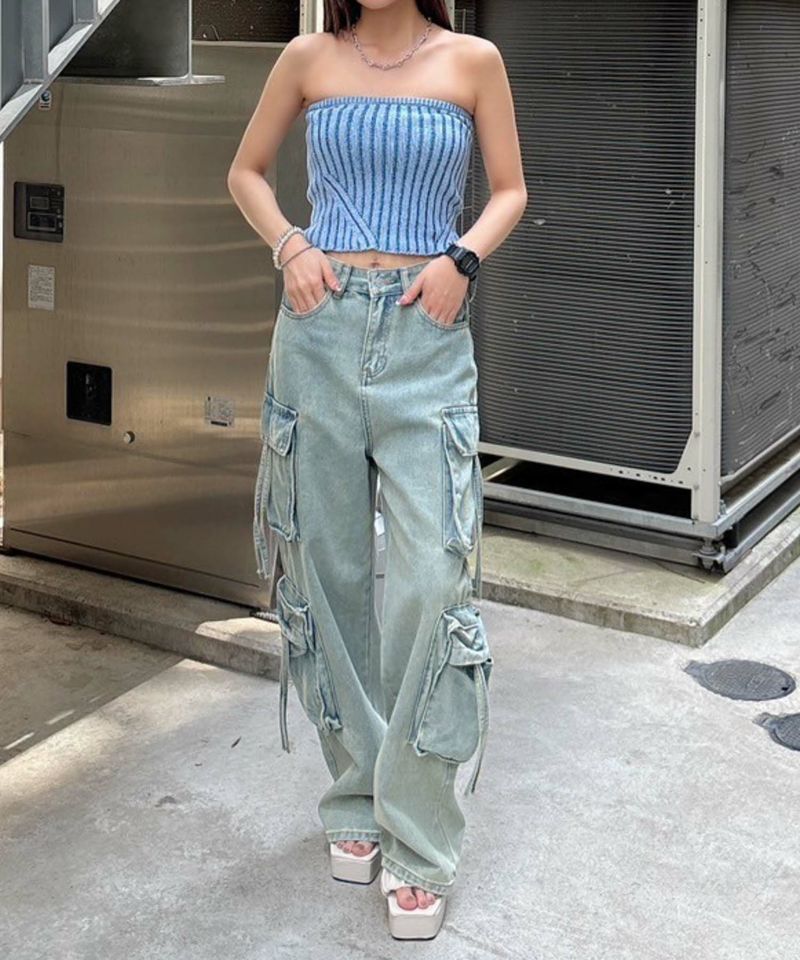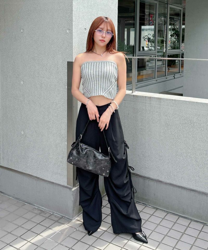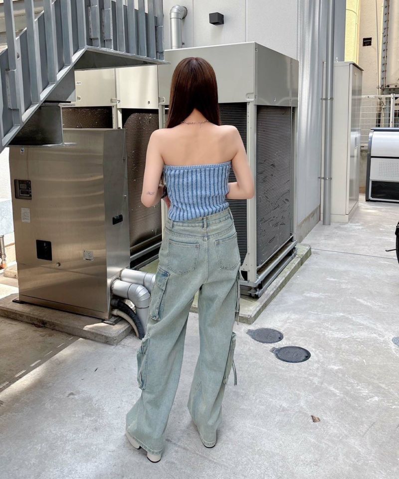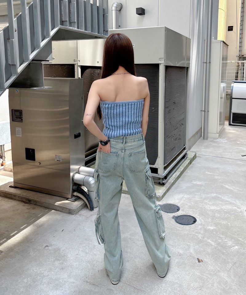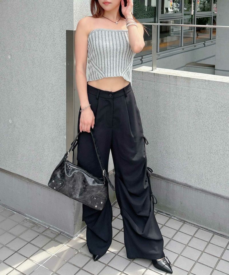 短めの着丈なのでお腹が少し見えるようなボトムと合わせるのが◎