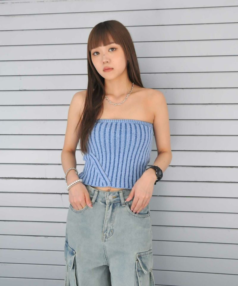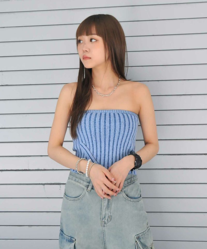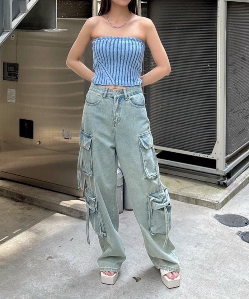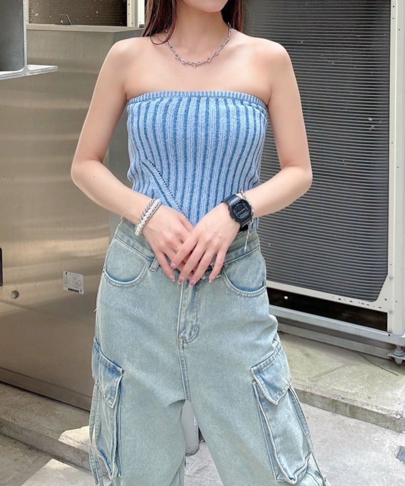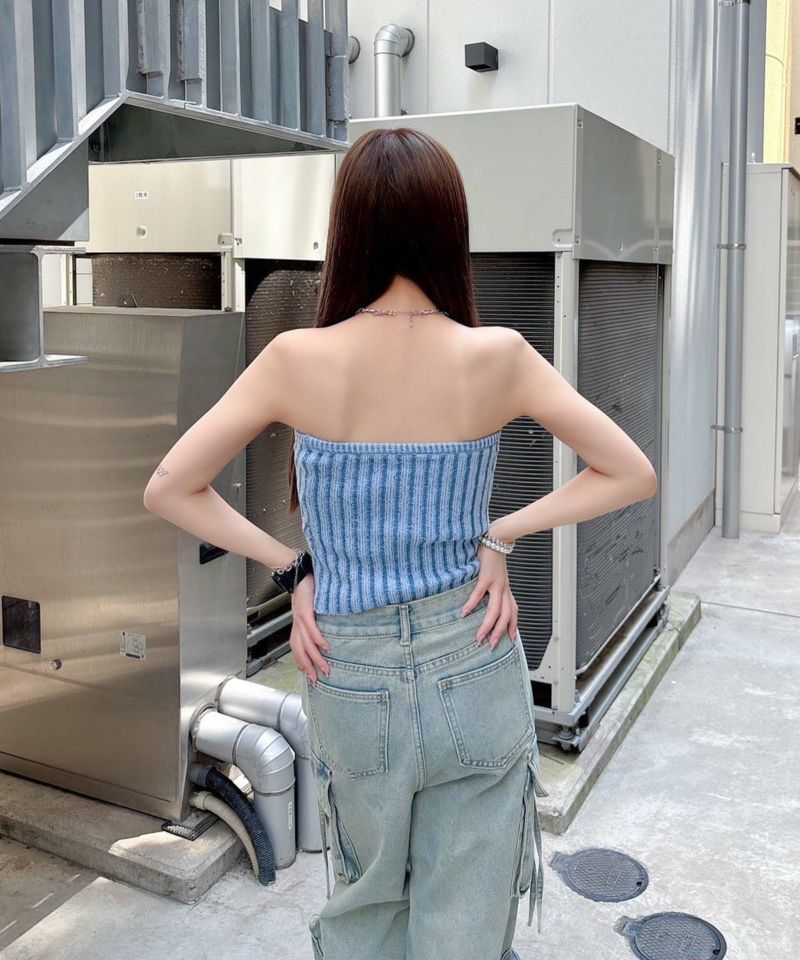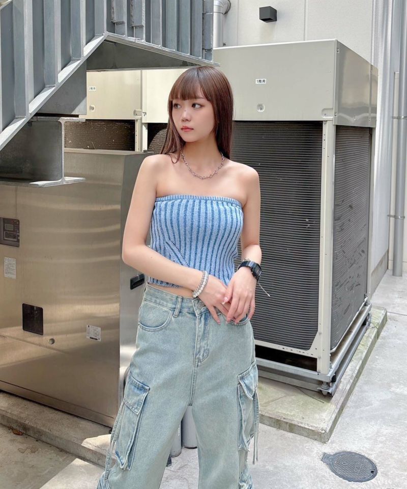 ヘルシーに1枚で着用するのがおすすめですが、露出が苦手な方はシャツを羽織ったりチビTと重ねてもOK!
