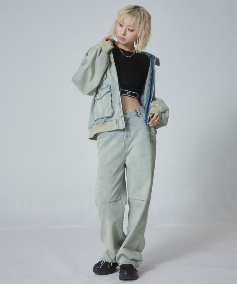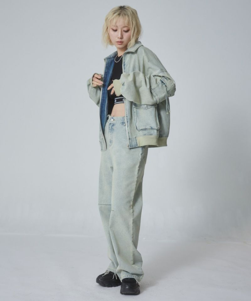 同素材を使用したポケットデニムブルゾンとセットアップ着用はもちろん、