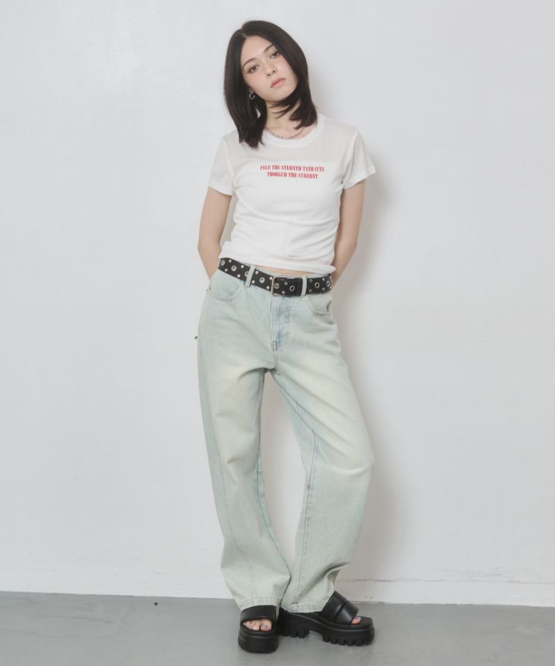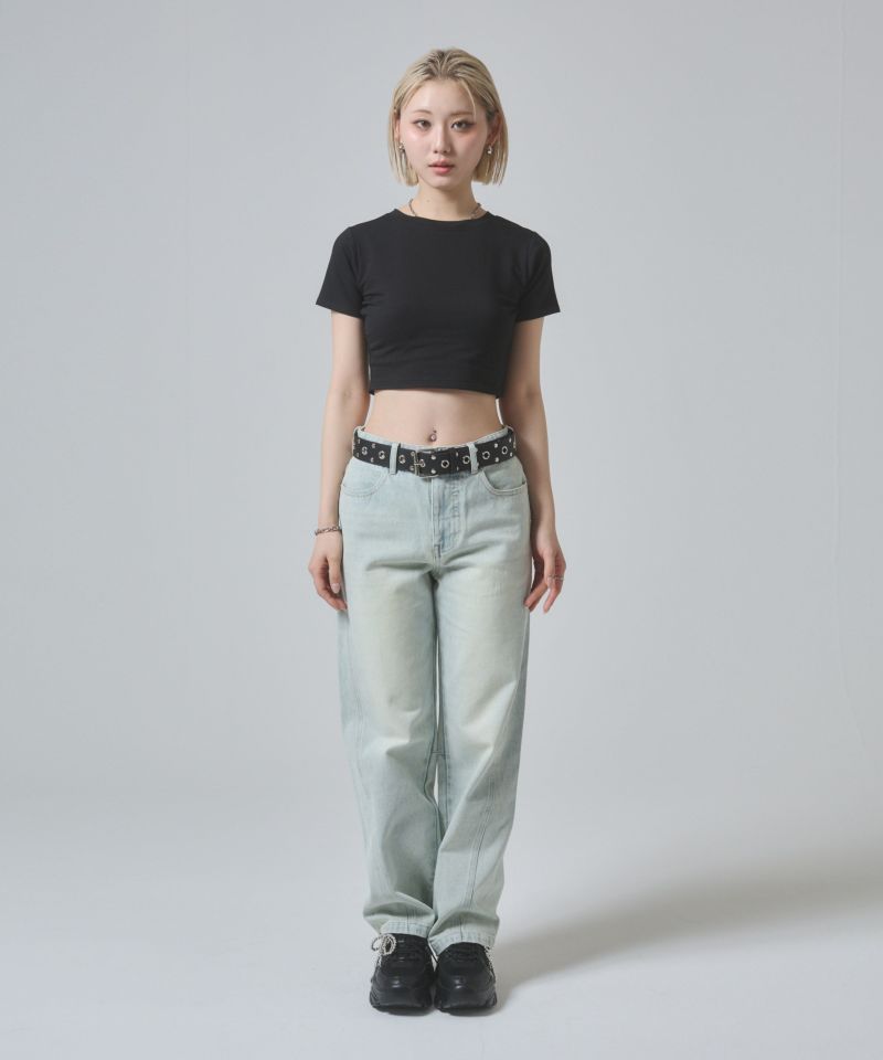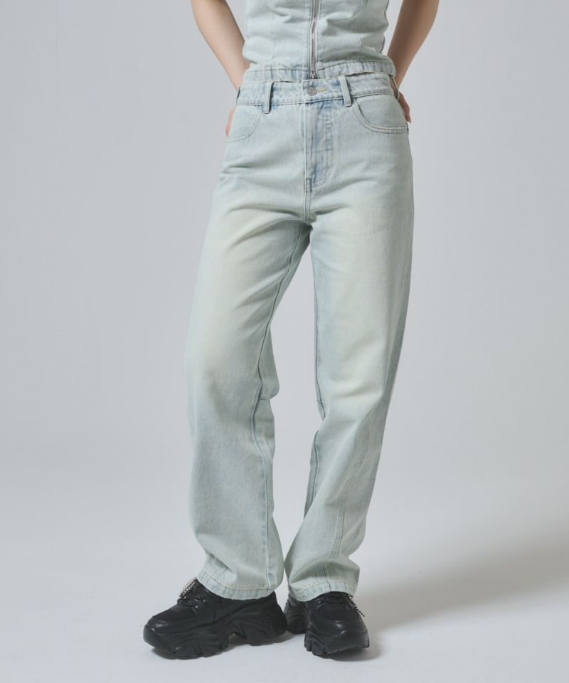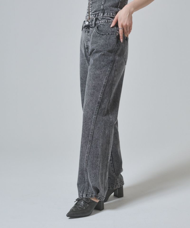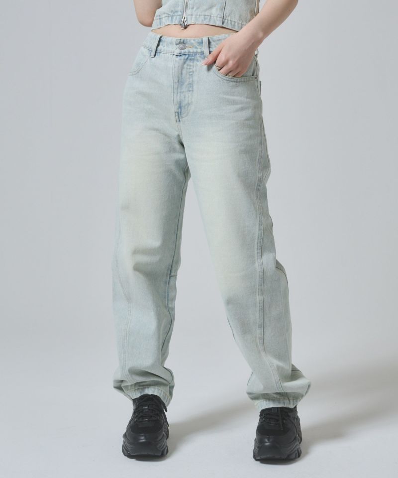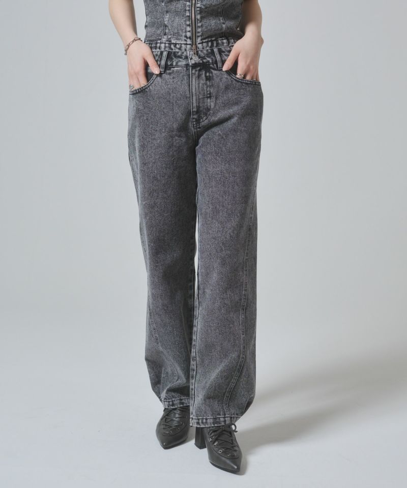 細身のストレートシルエットで系統問わず着用できるデニムパンツ。