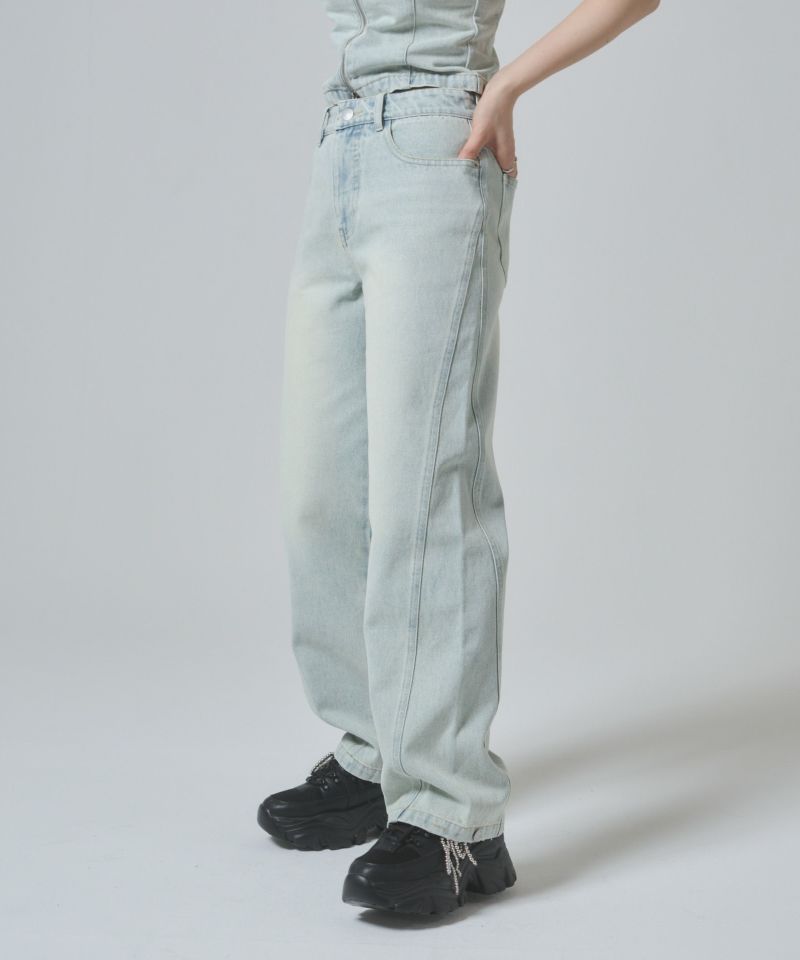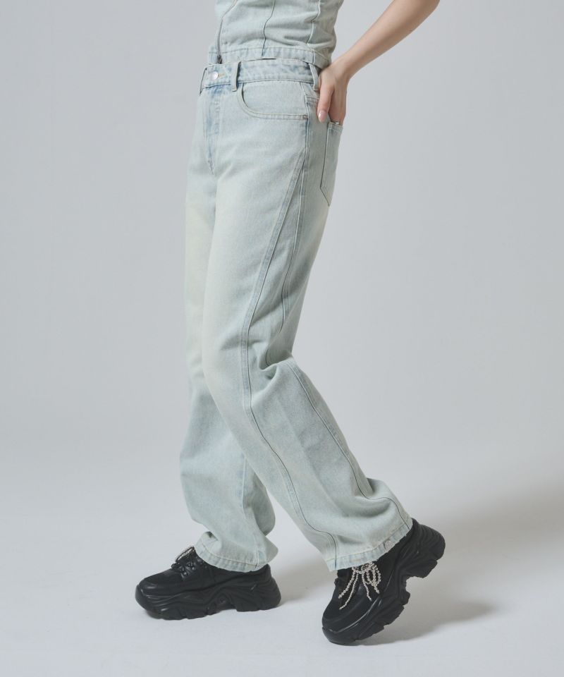 裾のボタンでシルエットが変更できる2WAYデニムが登場!