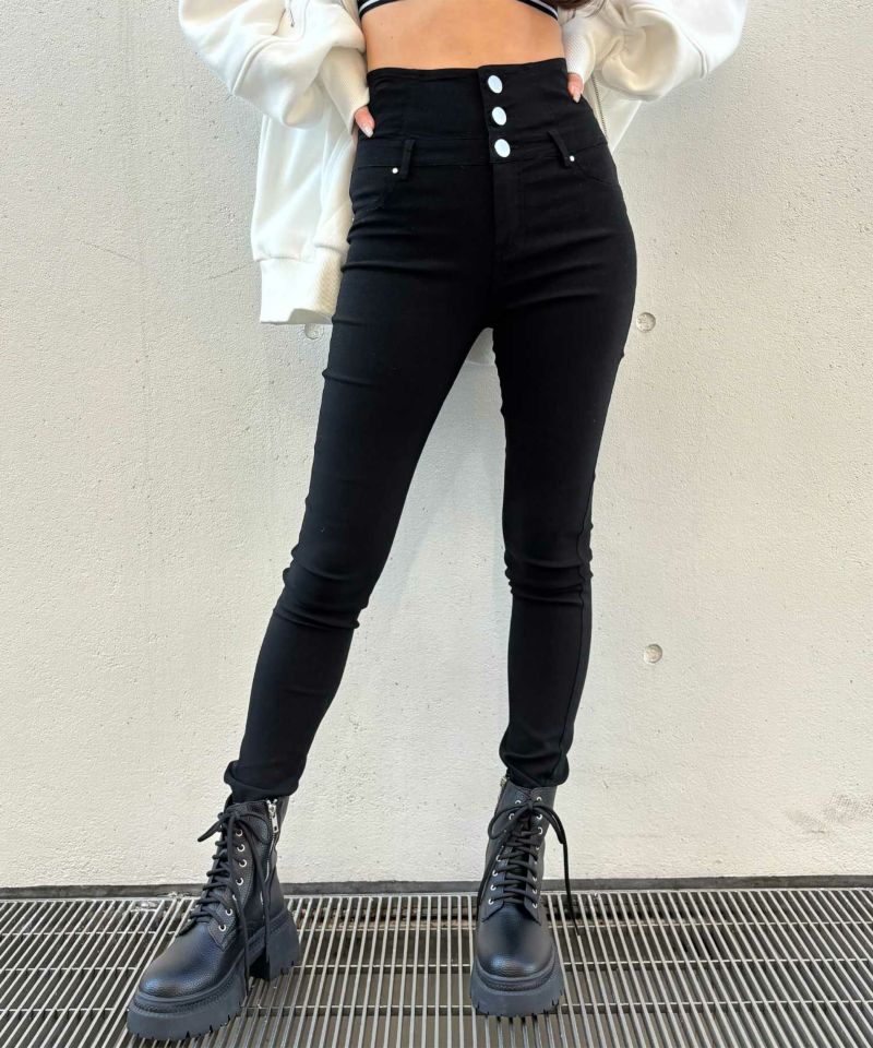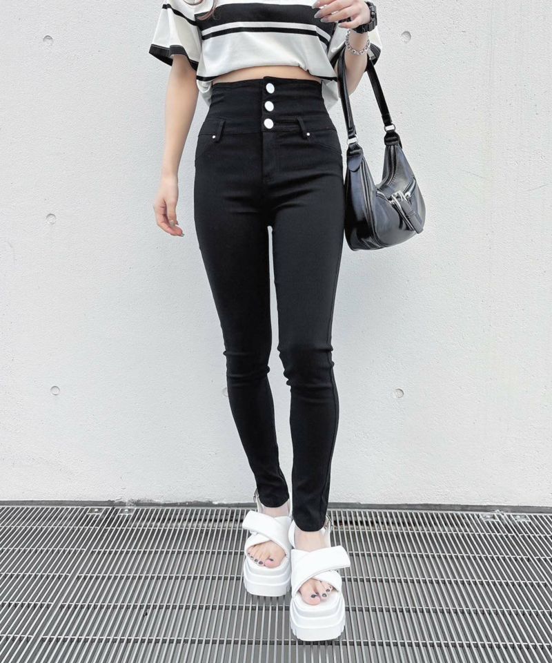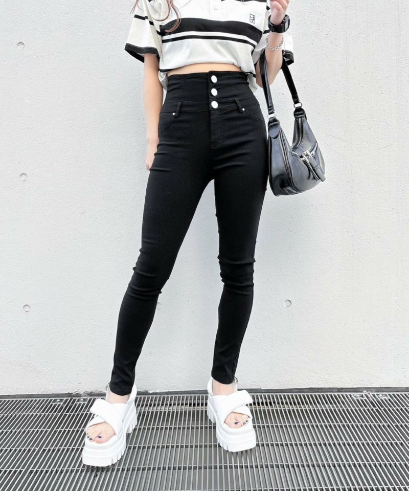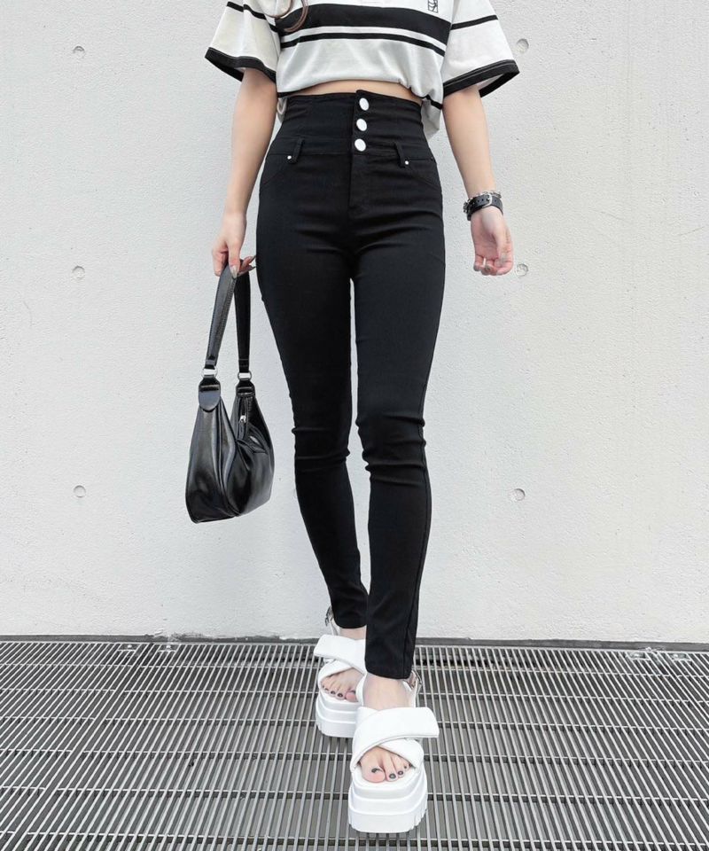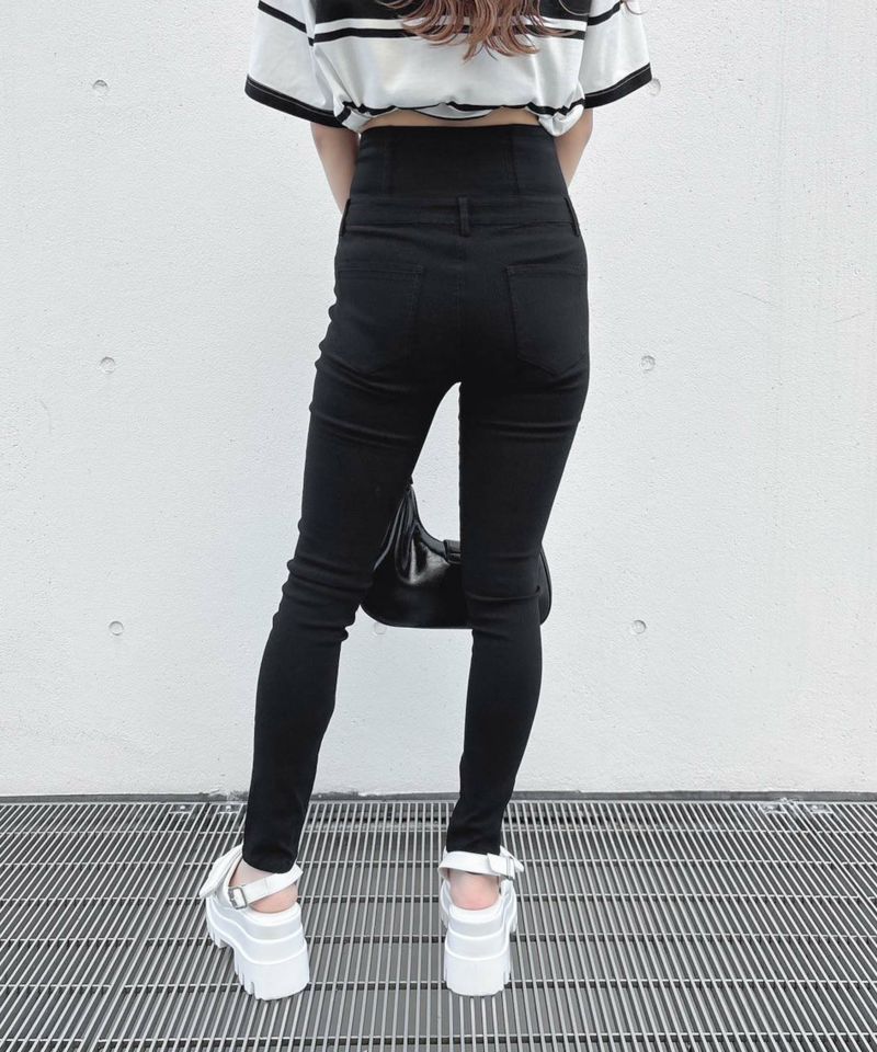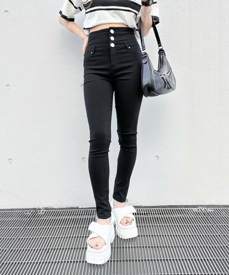 フロントに配した3つ釦が映えるハイウエストのデザインで、美スタイルにキマるジェギンス★