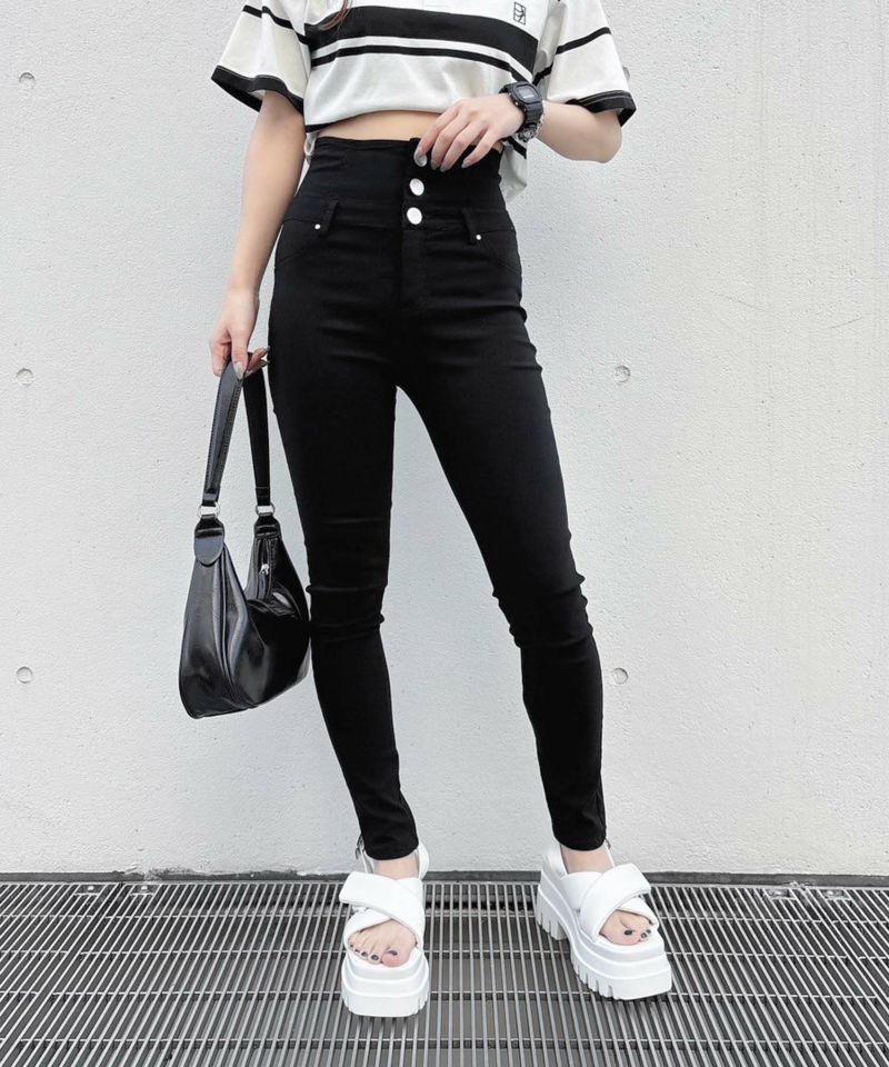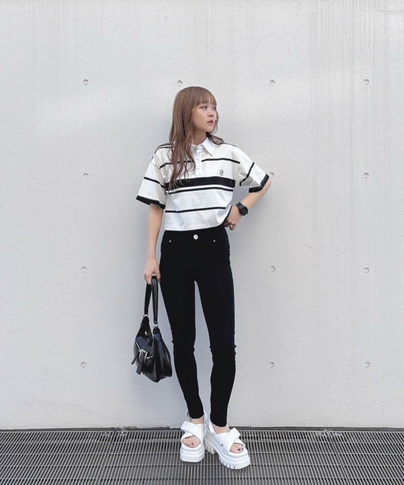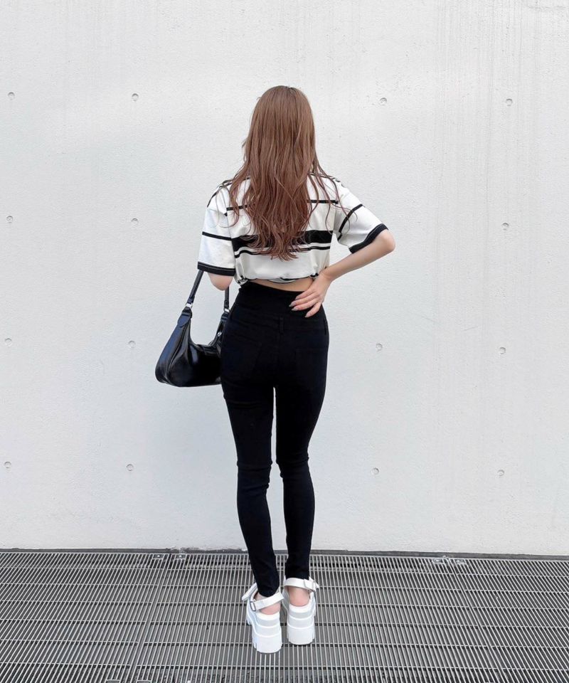 厚底シューズで合わせるとより足が綺麗に見せることが出来ます♪
