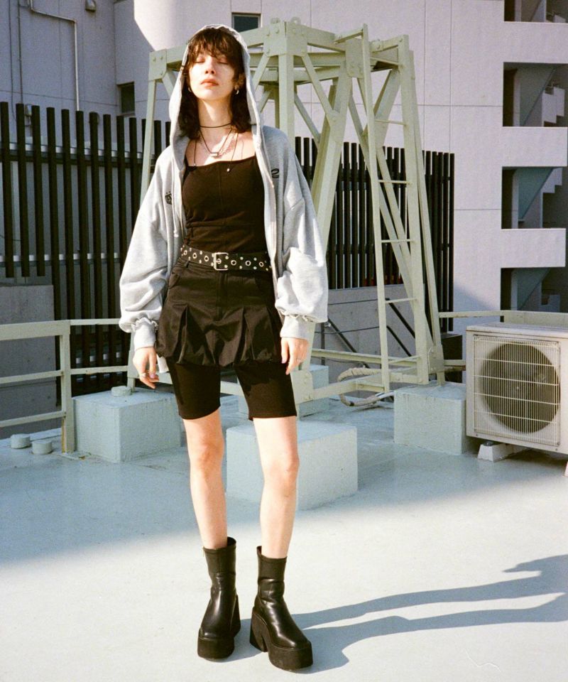 ビックパーカーやビックTシャツ等合わせていただくとバランスがとりやすいです!