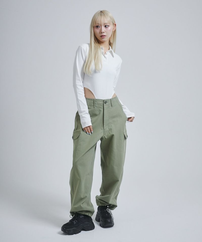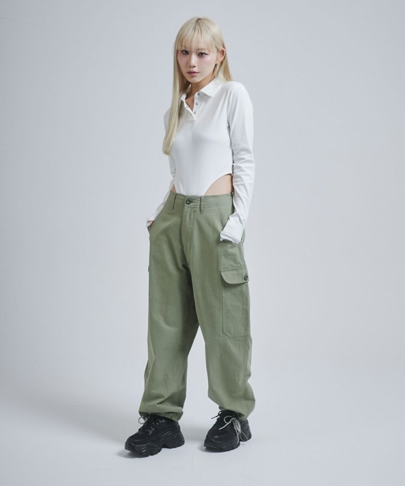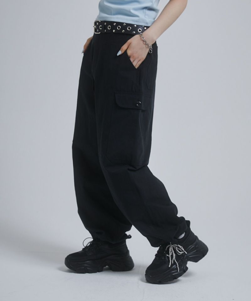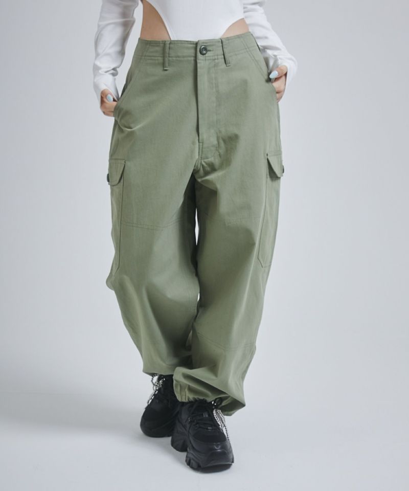 ポケットや裾口のドローコード、イレギュラーなステッチ使いでデティールにこだわったカーゴパンツ。