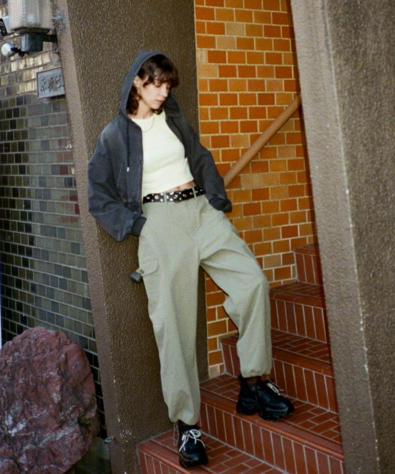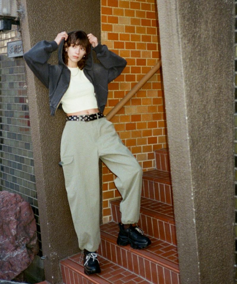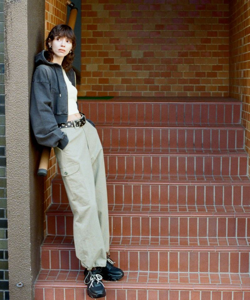メンズライク感のあるボトムスなので、女性らしいシルエットの出るトップスと合わせるのがおすすめ!