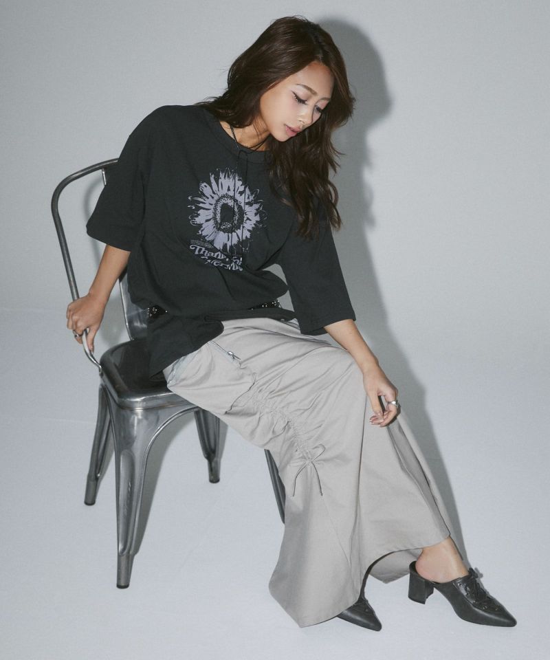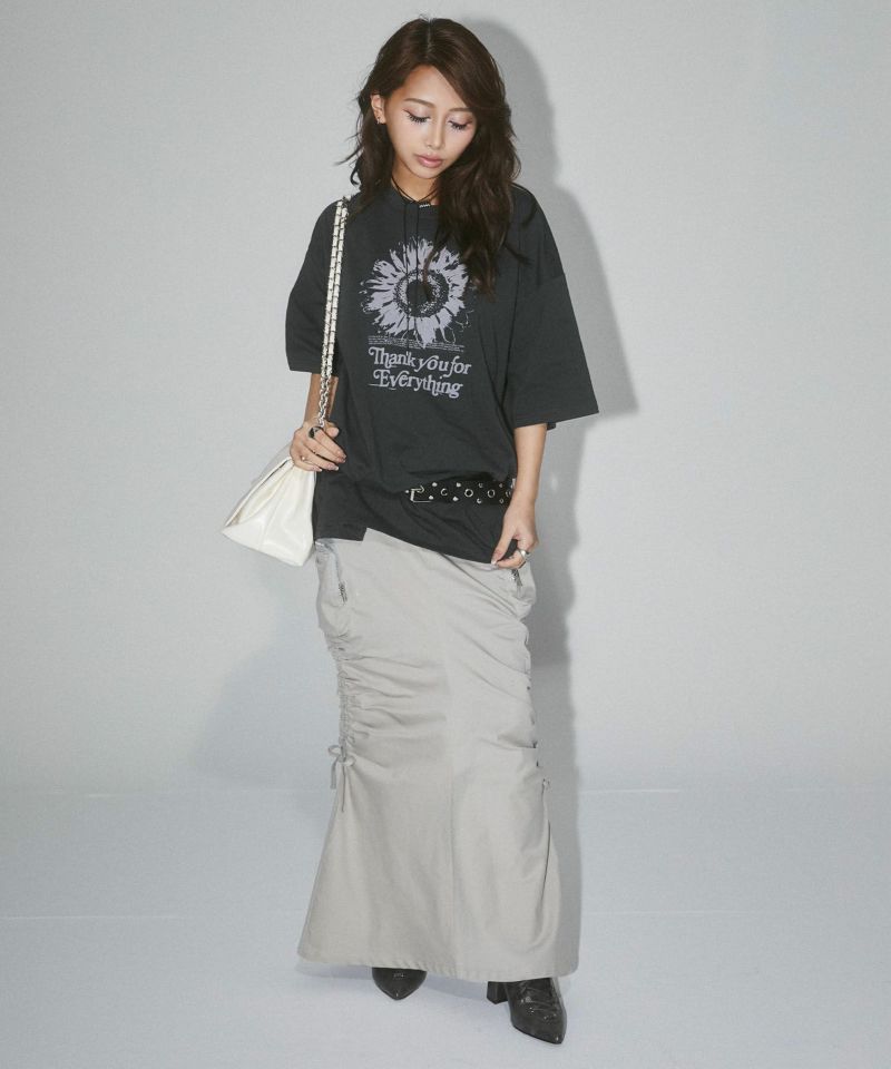 女性らしいマーメイドシルエットにしたことでカジュアル過ぎないアイテムに仕上げました。