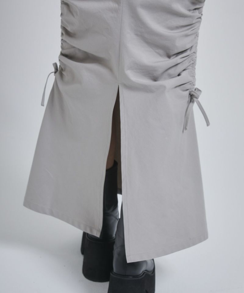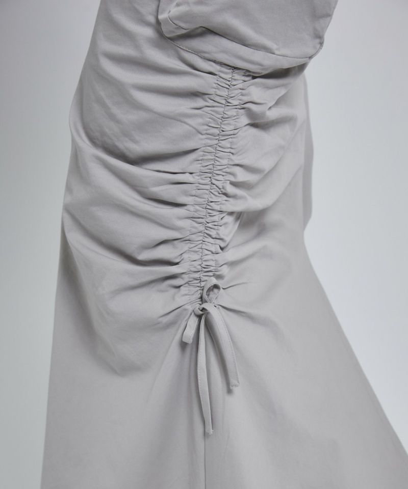 サイドのギャザーは調節が効くのでお好みのシルエットにすることが可能。