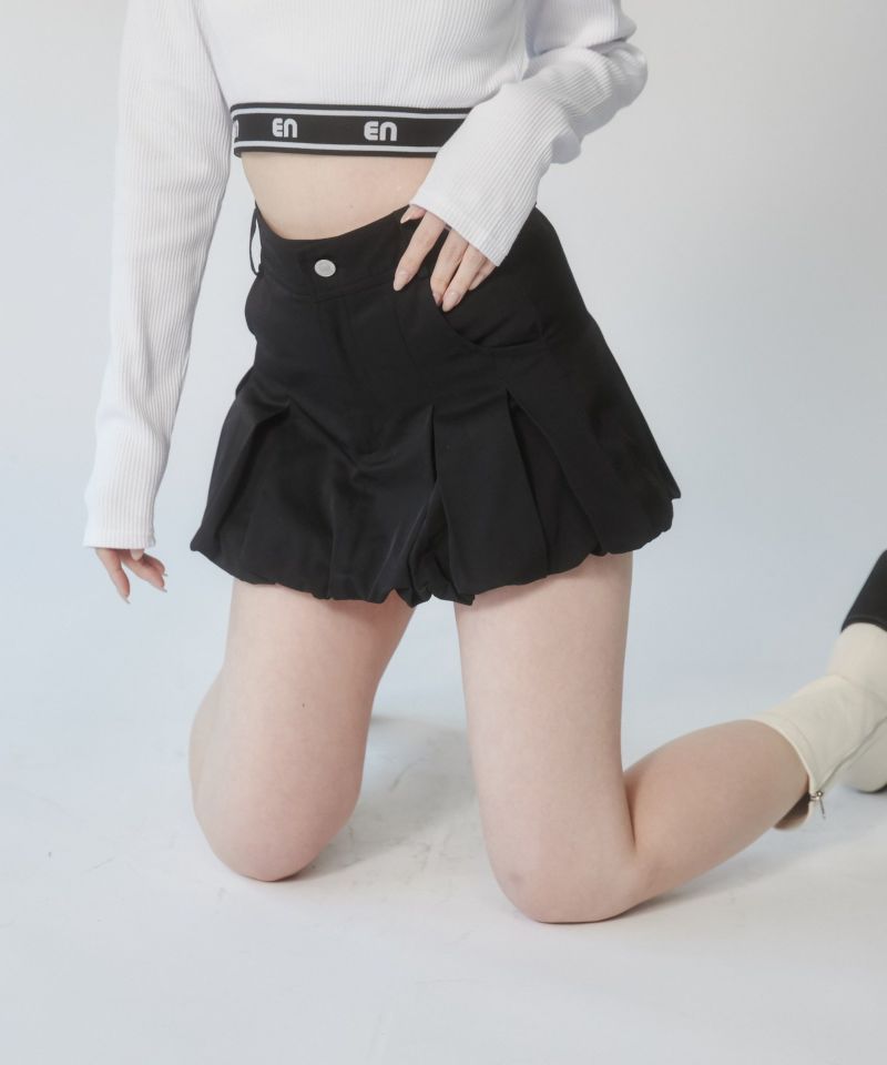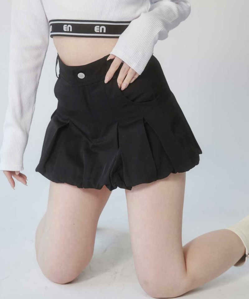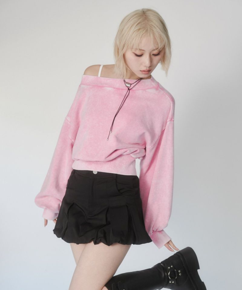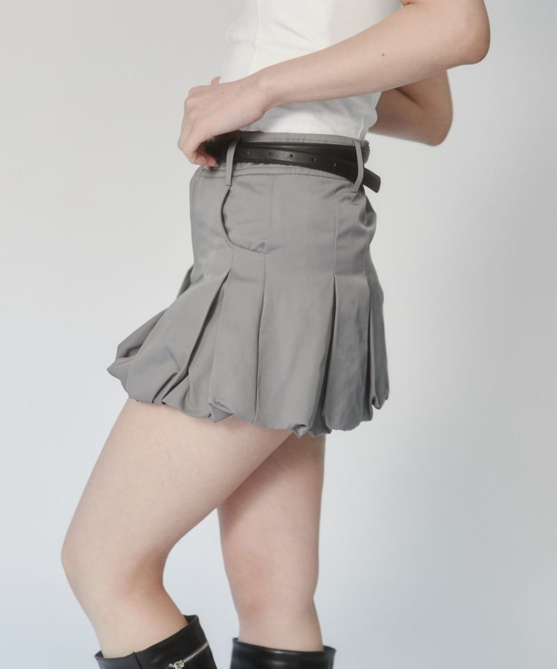 計算されたダーツとタック位置で立体的なバルーンシルエットを構築しています。
