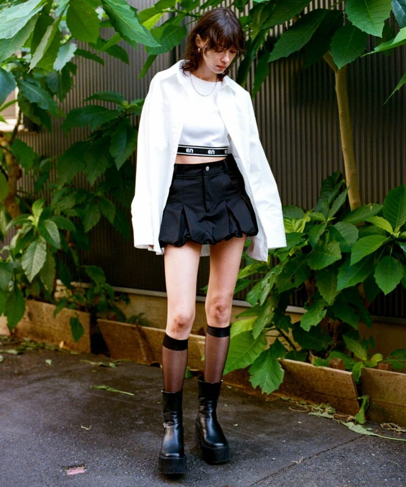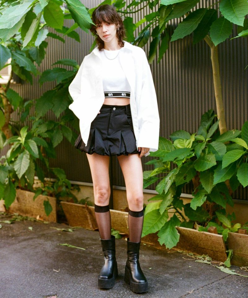 パーカーなどのオーバーシルエットなアイテムにさらっと合わせるのがおすすめ!
