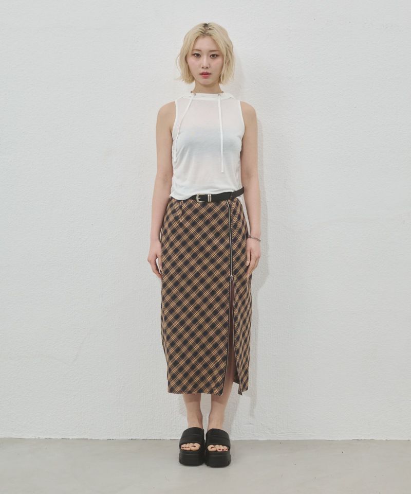 バイアス取りしたチェック生地を使用して、一気にトレンド感の出るスカート。