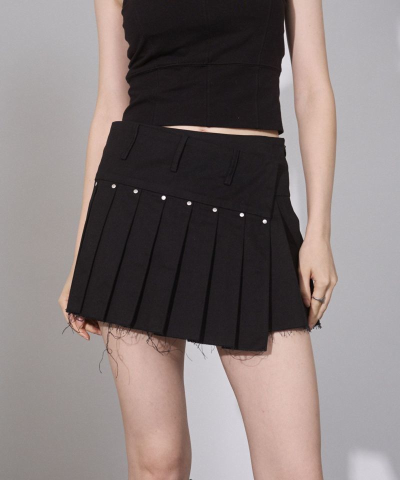 カットオフデザインでカジュアル感がありつつも、プリーツデザインで程よい甘さがプラスされバランス感が可愛いスカート。