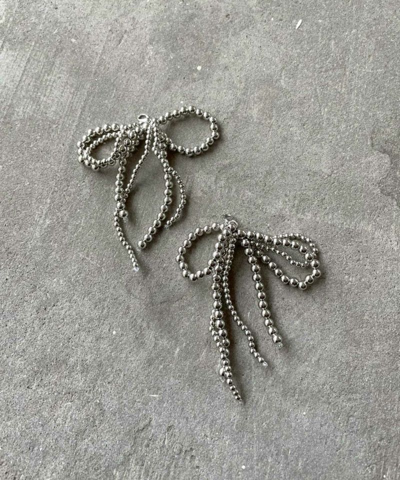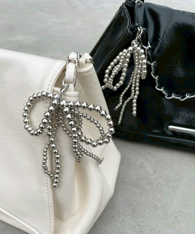 -------------------------------------------------- ■ディティール シルバーのビーズをリボン型にしたトレンド感のあるチャーム! シルバーなので甘すぎず、程よくアクセントになります。 カニカンで取り外しが可能なので、スニーカーにつけるのはもちろんバッグなどにつけるのもおすすめです♪ --------------------------------------------------