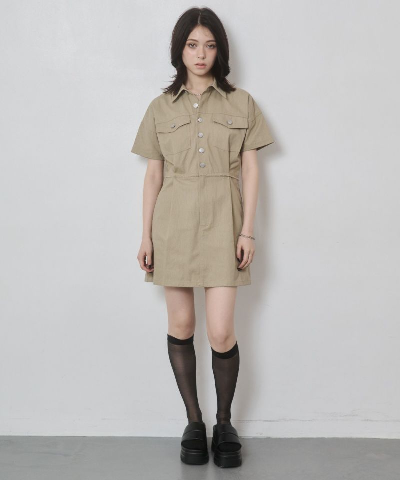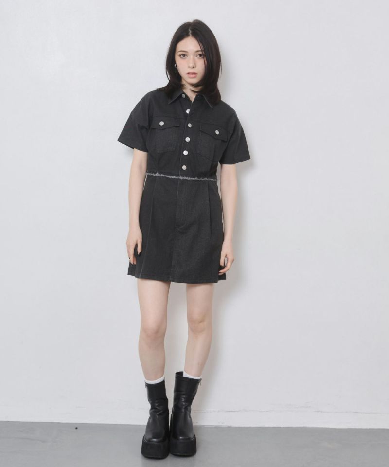 -------------------------------------------------- ■ポイント デニムライクなミニワンピースが登場! ■ディティール 夏に1枚で着用出来るワンピース。 洗い加工をかけたヴィンテージライクな生地感がカジュアルな印象です。 ウエスト部分は切りっぱなし加工にしてアクセントにしています。 ■スタイリング 1枚で着用するのはもちろん、シアートップスを中に重ねたり、フレアパンツなどを合わせたレイヤードスタイルも◎ --------------------------------------------------