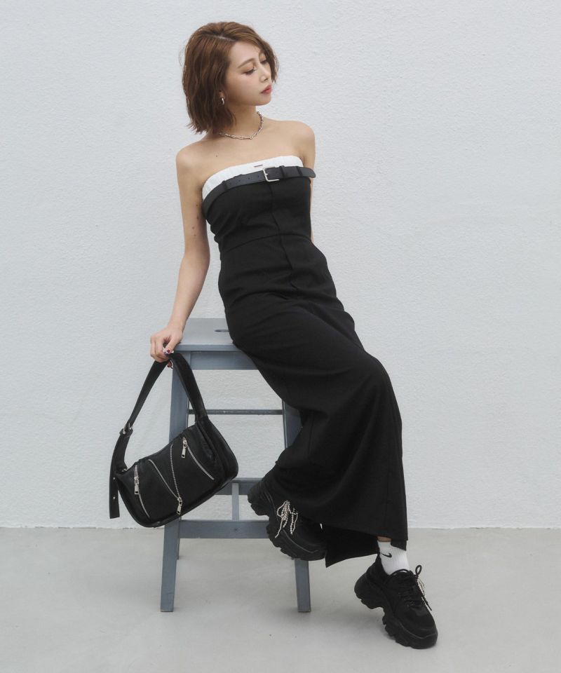 ベルトループ付なので、【Aimi×ENVYM】ベーシックフェイクレザーベルトを付けるのがおすすめです。