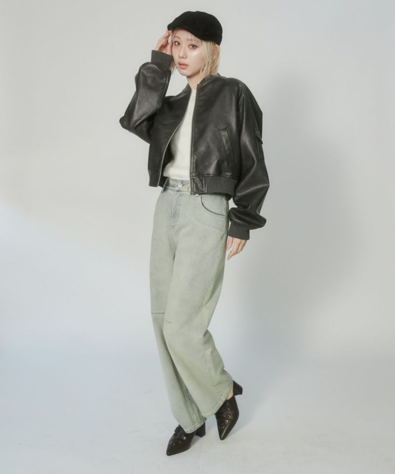 ショート丈なのでルーズデニム合わせがおすすめです。