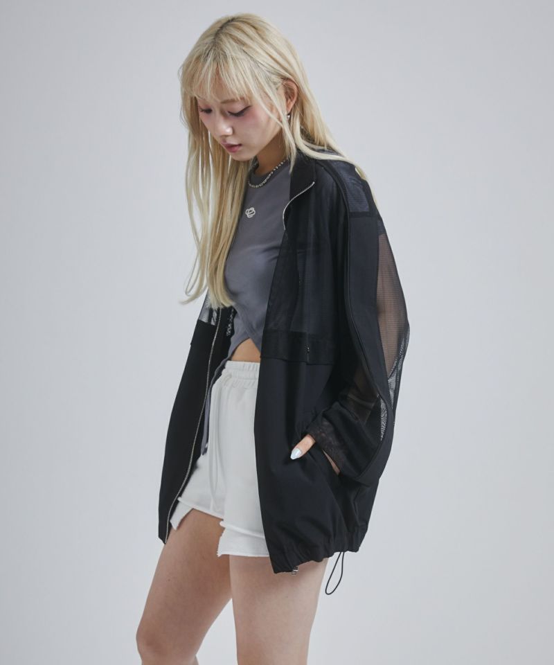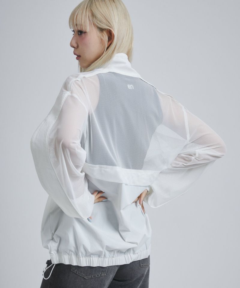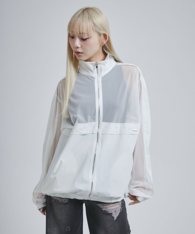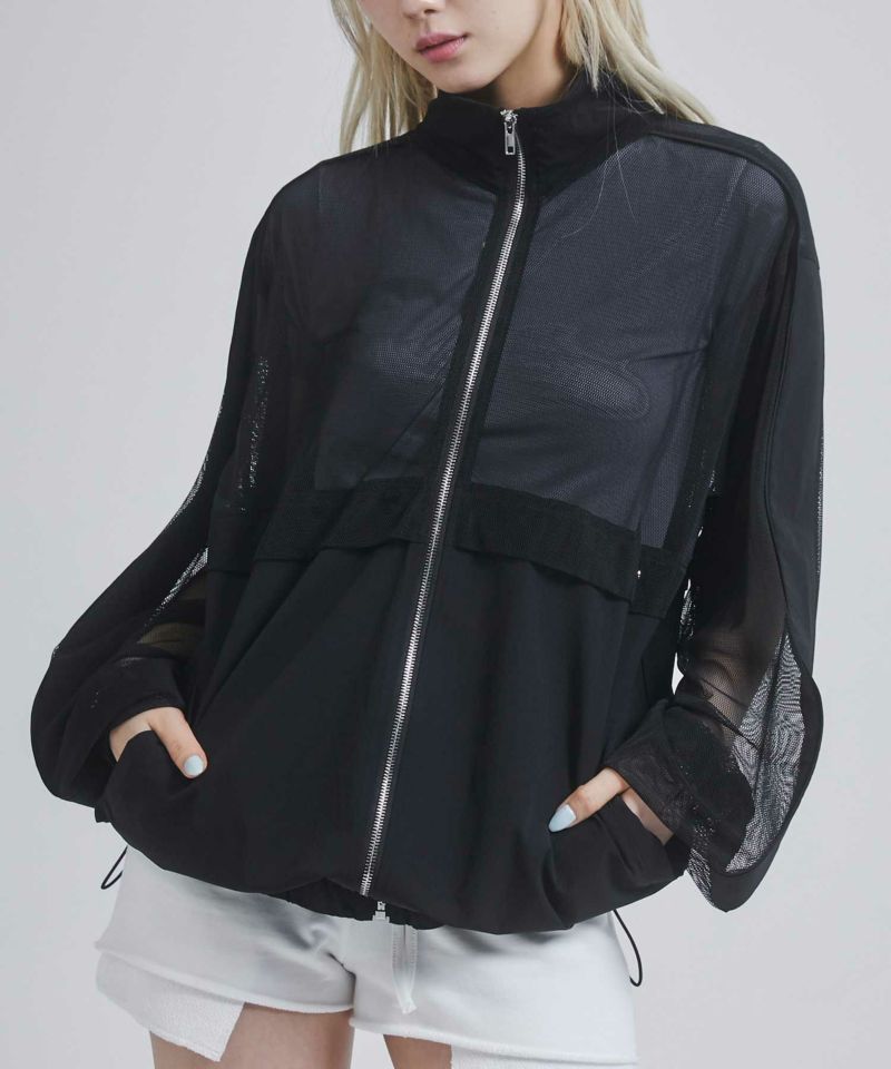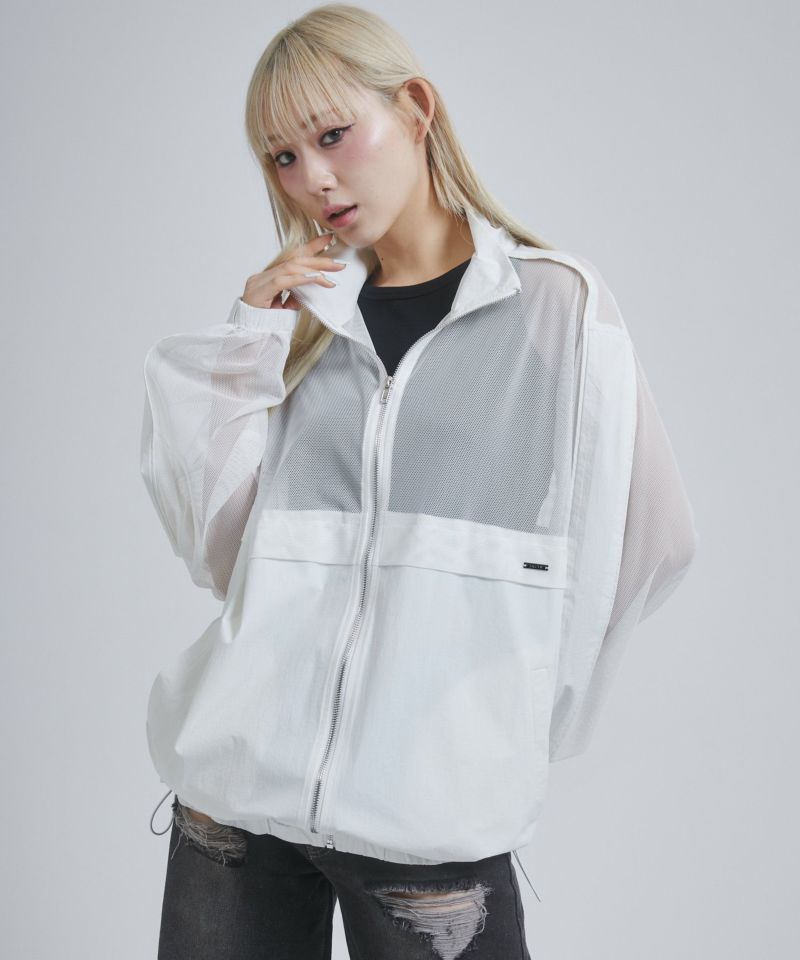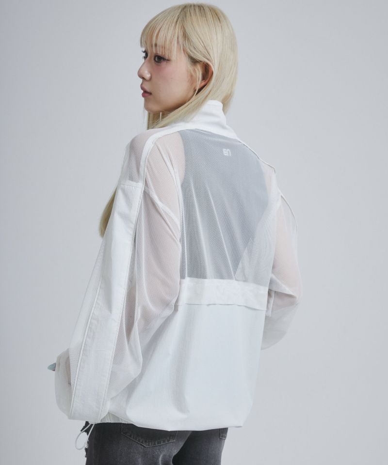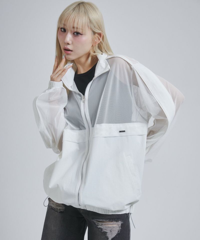 薄手のナイロン生地とメッシュ生地をドッキングさせたデザイン性が魅力のブルゾン。