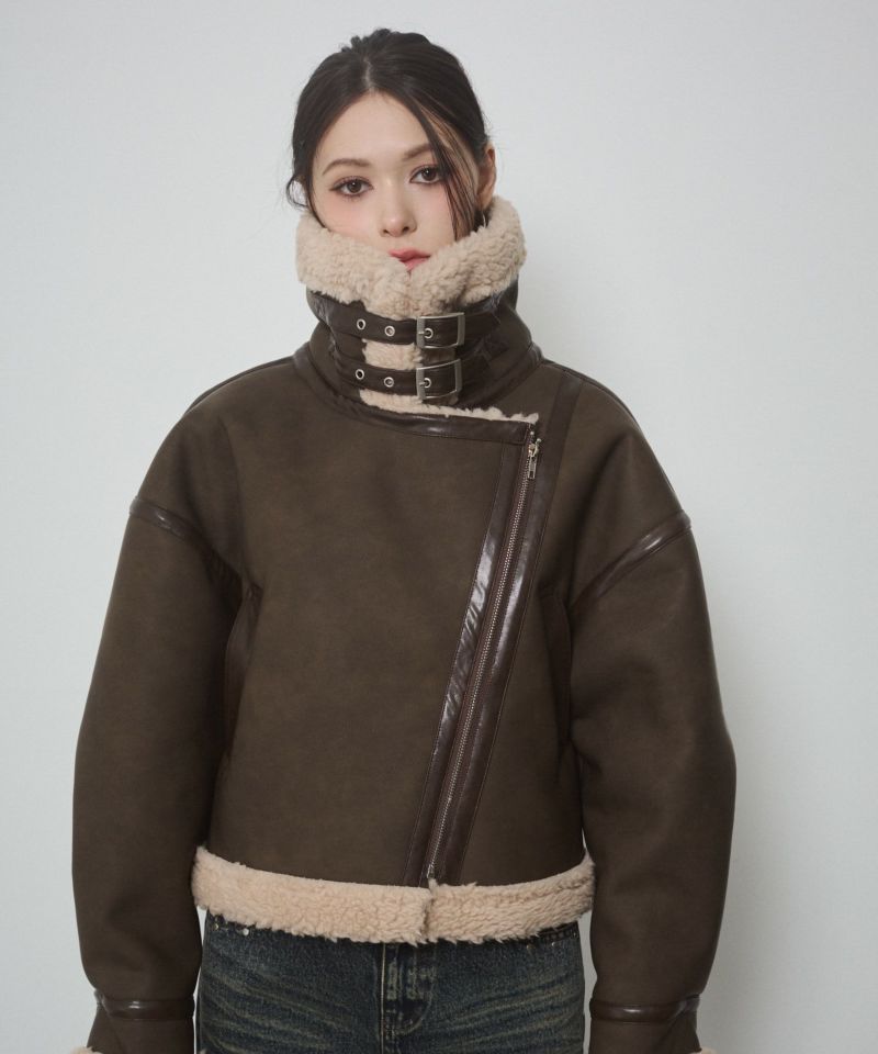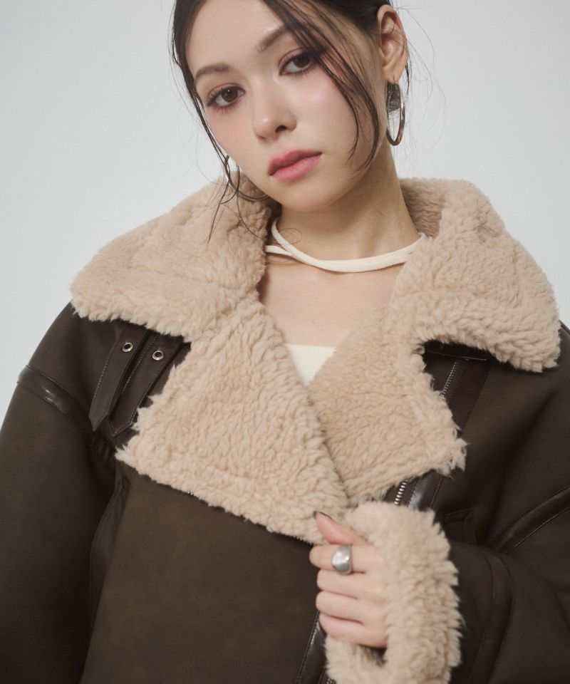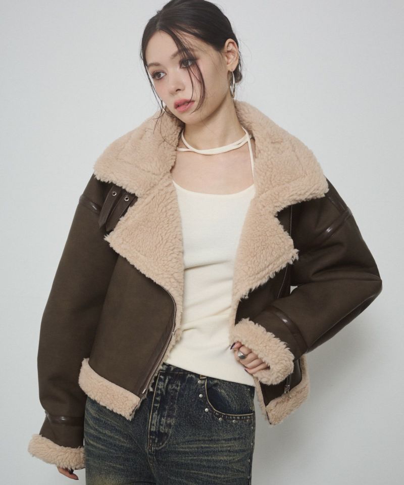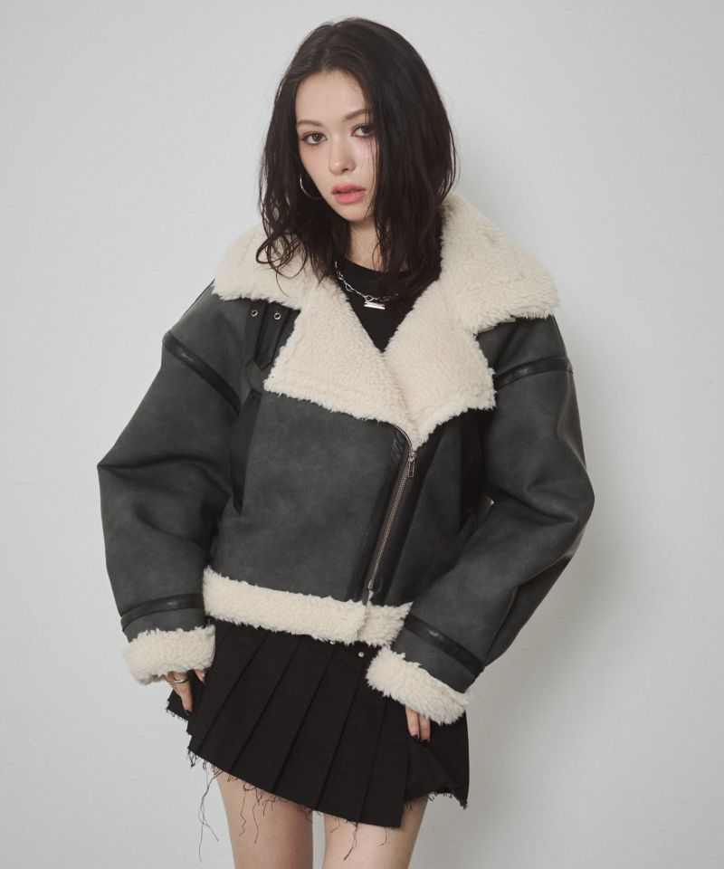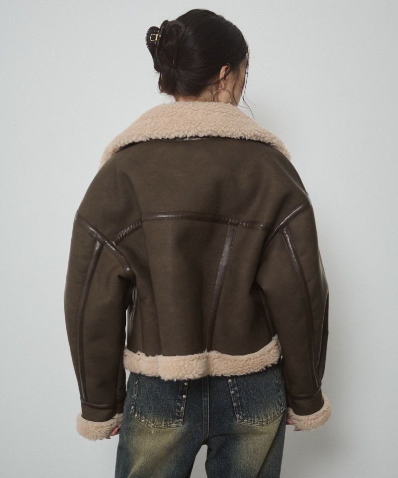 微配色のパイピングと立体感のあるボア生地が高級感のあるジャケット。