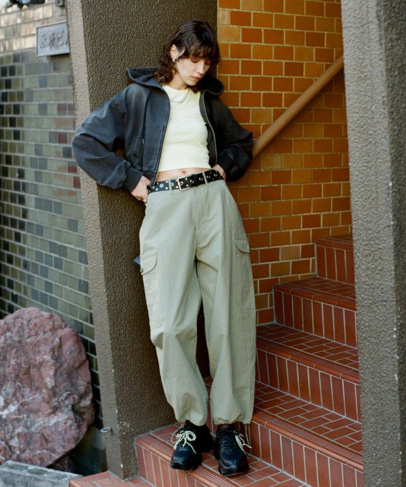 インナーにはタンクトップやTシャツを合わせて、カーゴパンツなどと合わせるのも◎