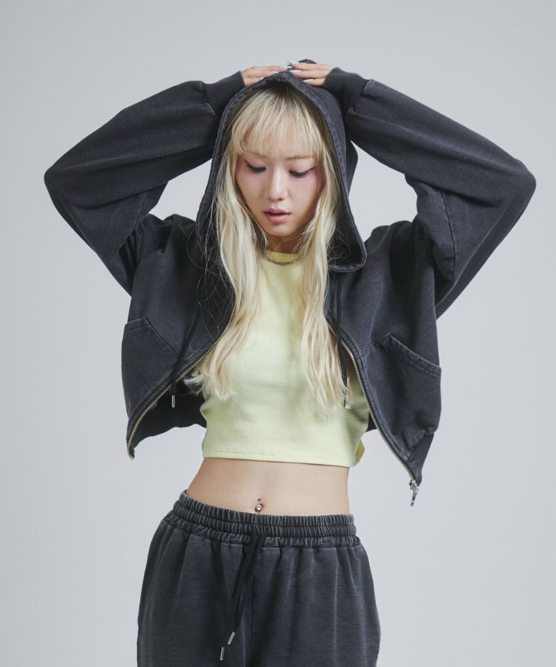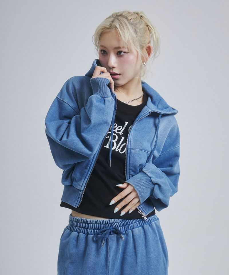 デニムのようなウォッシュ加工を施したハイセンスなショートパーカー!