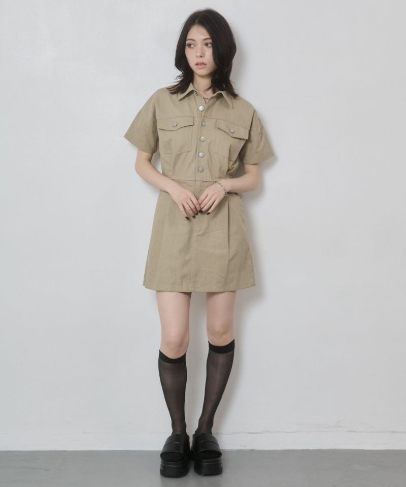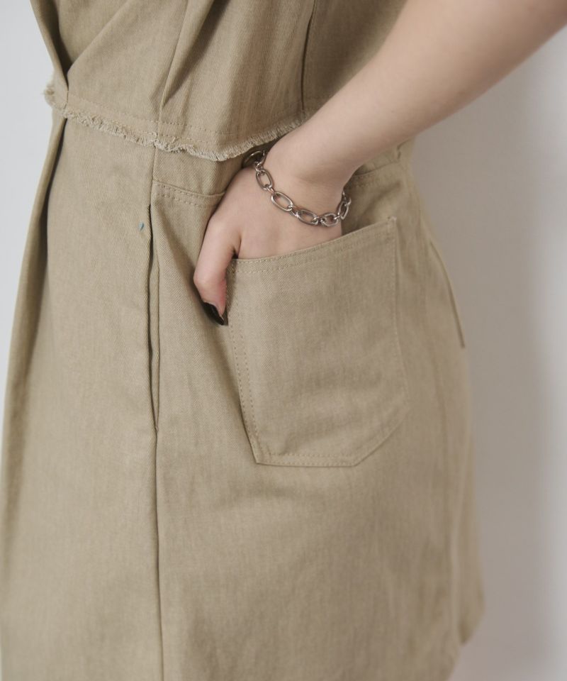 -------------------------------------------------- ■ポイント デニムライクなミニワンピースが登場! ■ディティール 夏に1枚で着用出来るワンピース。 洗い加工をかけたヴィンテージライクな生地感がカジュアルな印象です。 ウエスト部分は切りっぱなし加工にしてアクセントにしています。 ■スタイリング 1枚で着用するのはもちろん、シアートップスを中に重ねたり、フレアパンツなどを合わせたレイヤードスタイルも◎ --------------------------------------------------