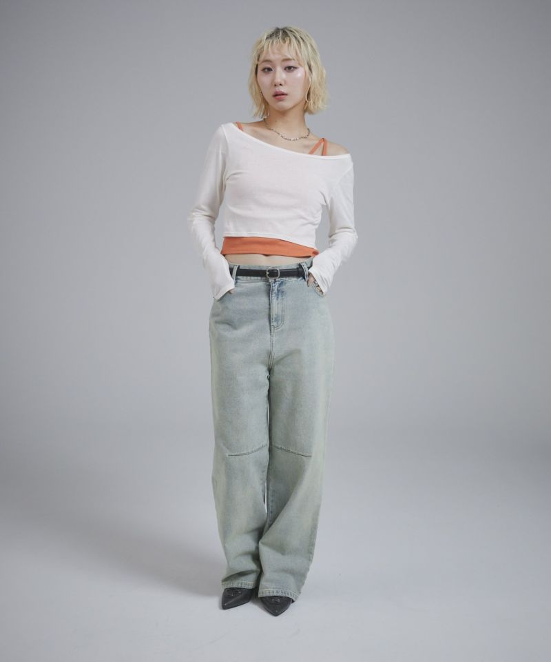キャミソール部分はカットリブ、ロンT部分はシアー感のあるカットソーを使用しています。