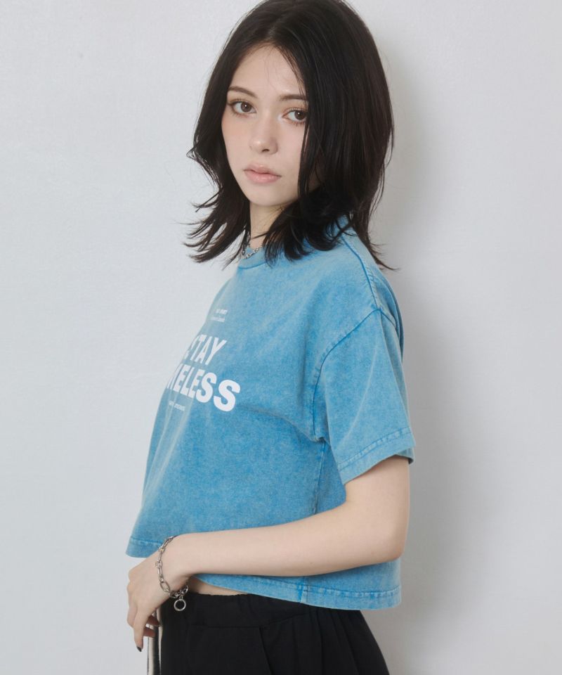 -------------------------------------------------- ■ポイント 古着のようなケミカル加工が魅力のショートTシャツ! ■ディティール ムラのある加工感がヴィンテージ感があり今年らしいTシャツ。 ショート丈ですがゆとりのあるサイズ感になっているので、体型カバーもしてくれます。 フロントにはロゴプリントを施しアクセントにしました。 ■スタイリング フェスなどのイベントごとにおすすめなアイテム! デニムにも相性抜群です。 --------------------------------------------------