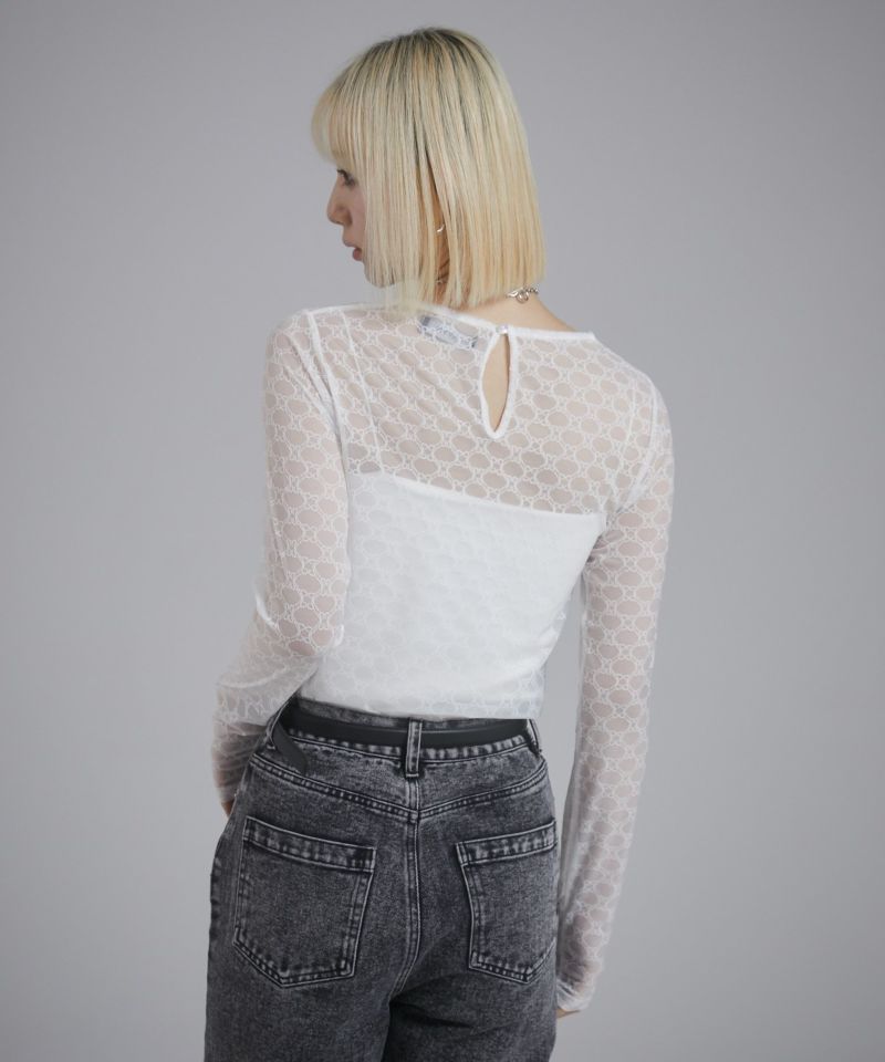 -------------------------------------------------- ■ポイント 他にはない独特なレースのような柄がアクセントになるシアートップス! ■ディティール ストレッチ性がありフィット感のあるシアートップスは、 ひとつ持っておくとスタイリングの幅が広がります。 バックは泪開きにたことで着用しやすくしました◎ ■スタイリング Tシャツレイヤードがおすすめ! シンプルなスタイリングが一気にこなれ感がプラスされます! --------------------------------------------------