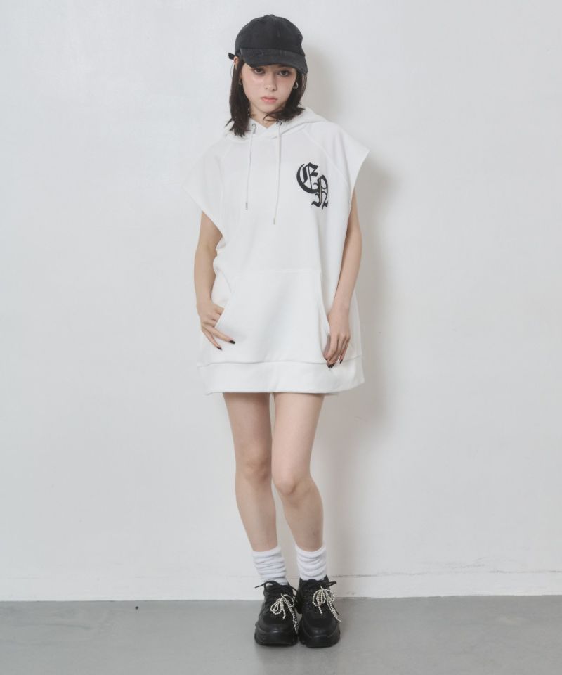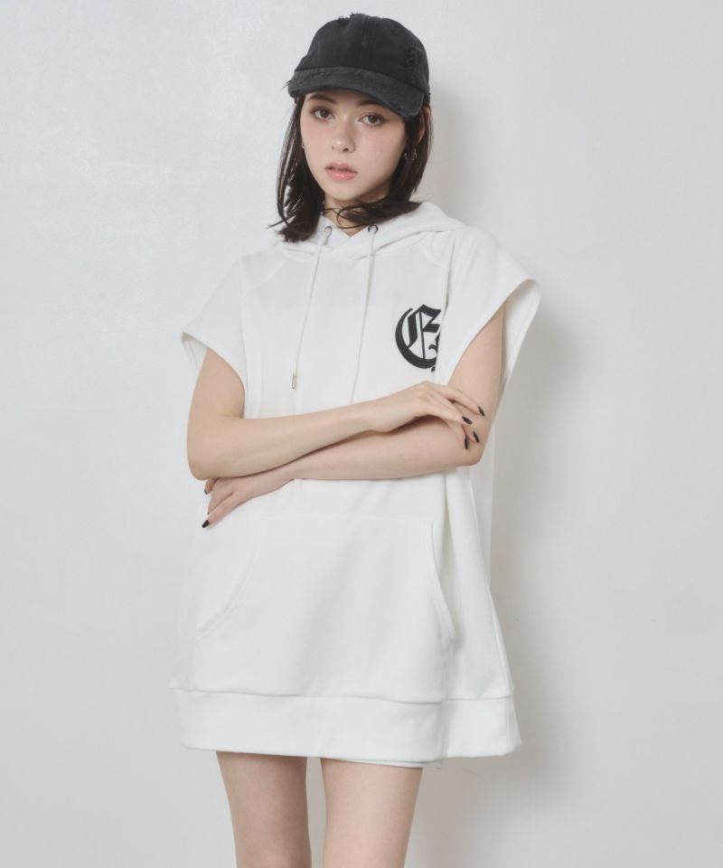 同素材を使用したワンポイントスウェットショートパンツとセットアップで着用するのがおすすめ。