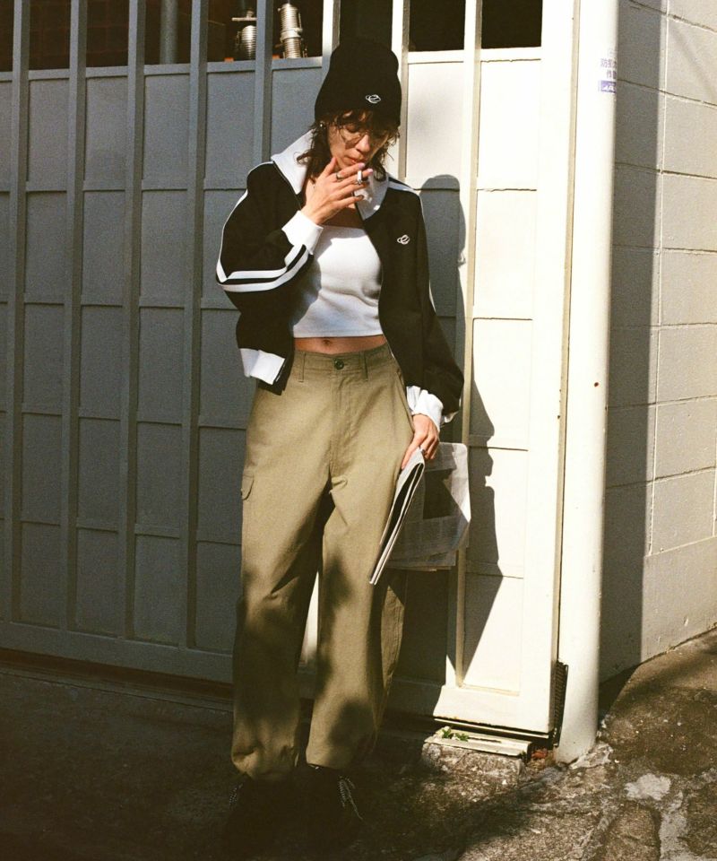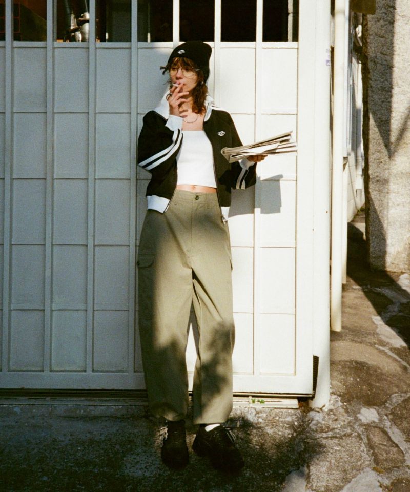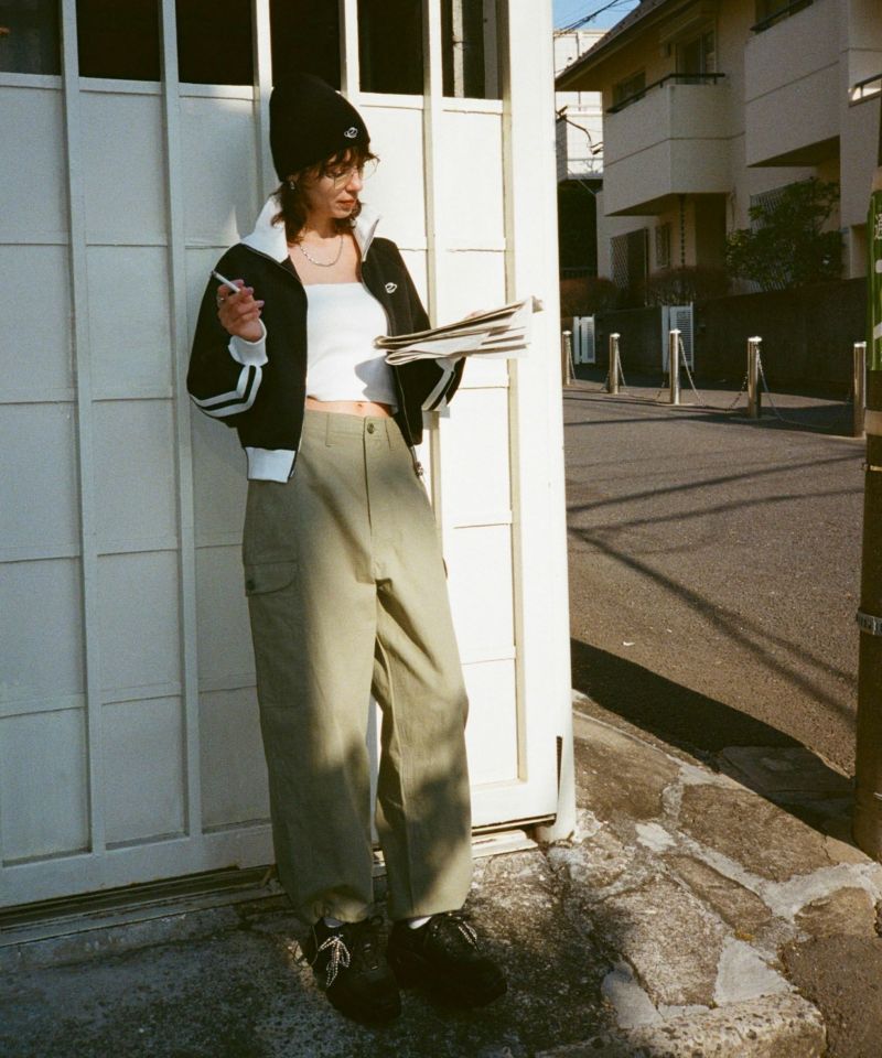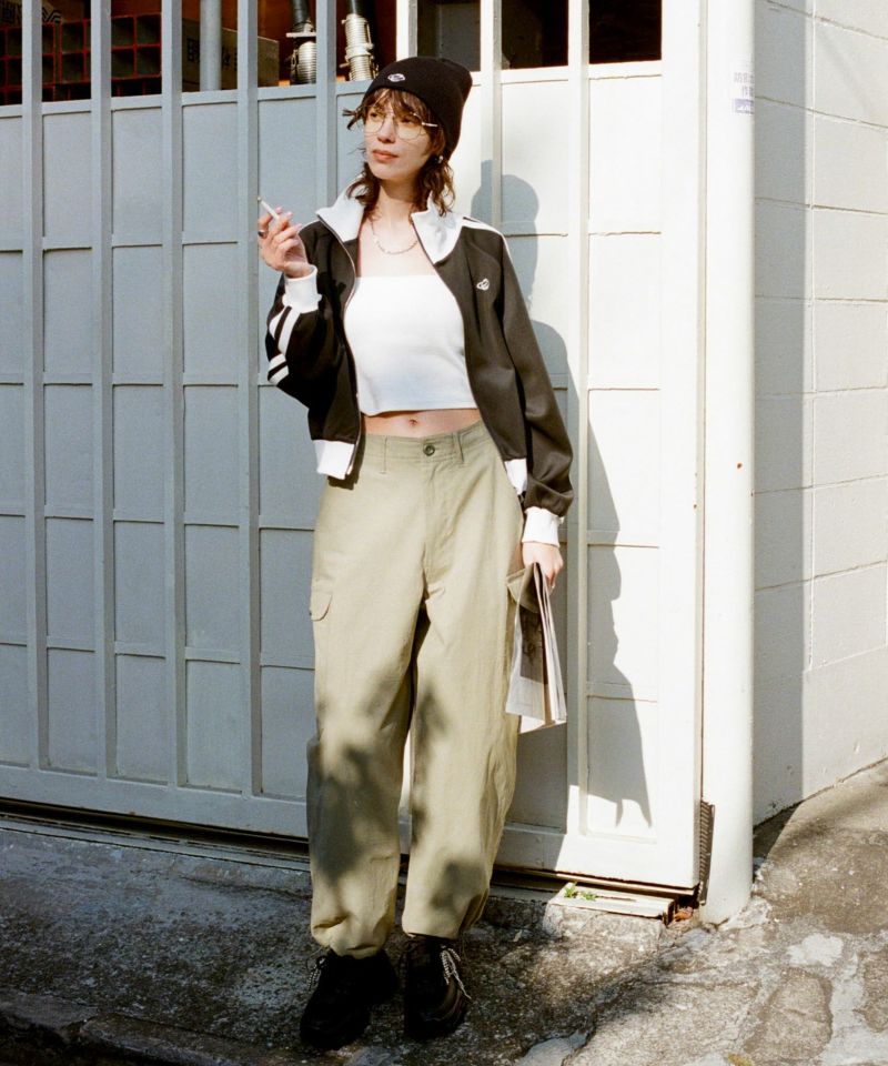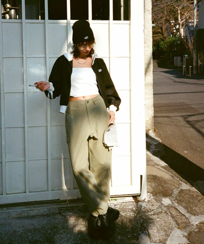 メンズライク感のあるボトムスなので、女性らしいシルエットの出るトップスと合わせるのがおすすめ!
