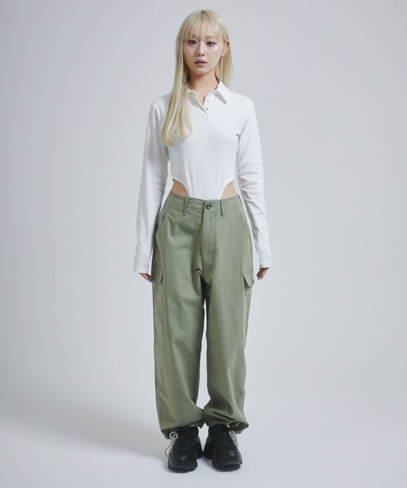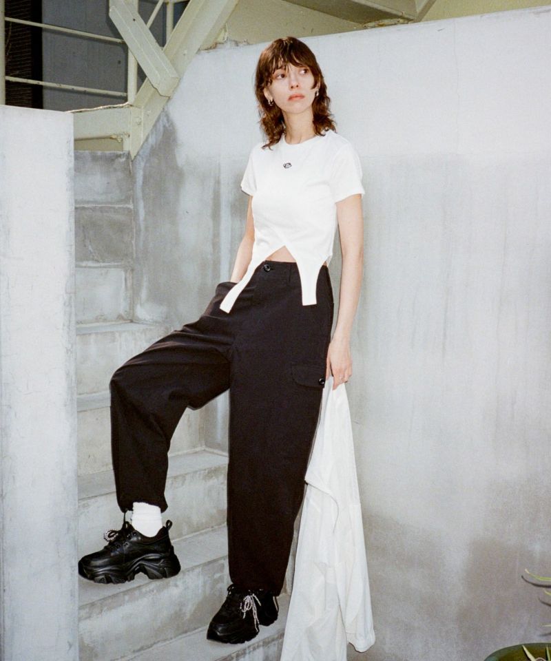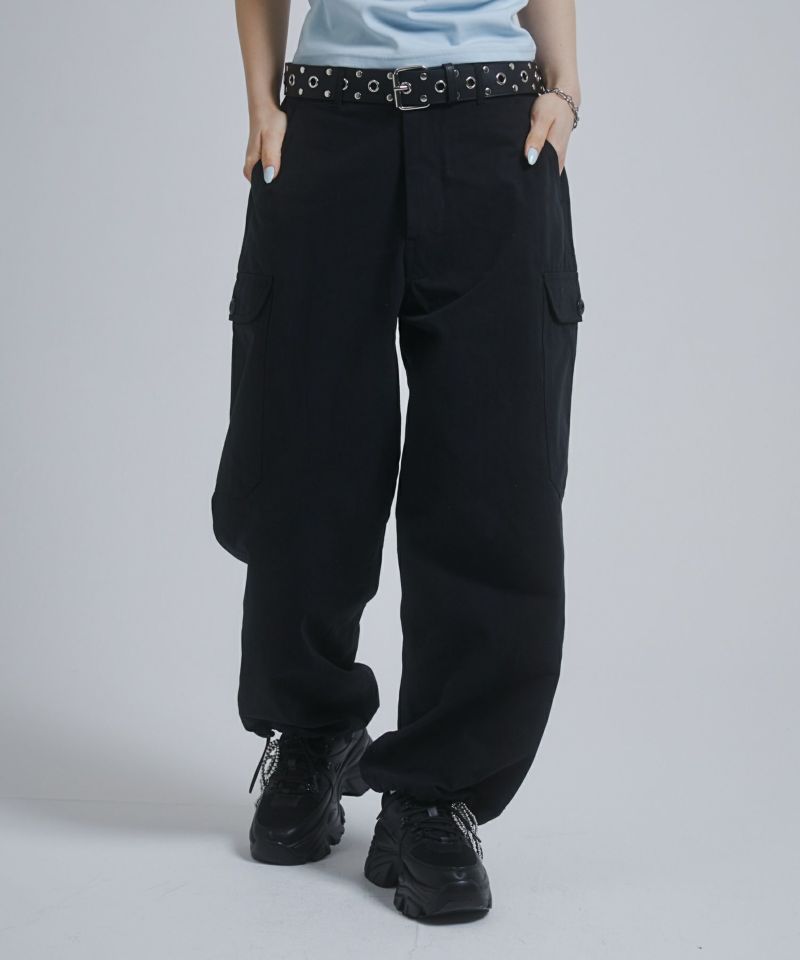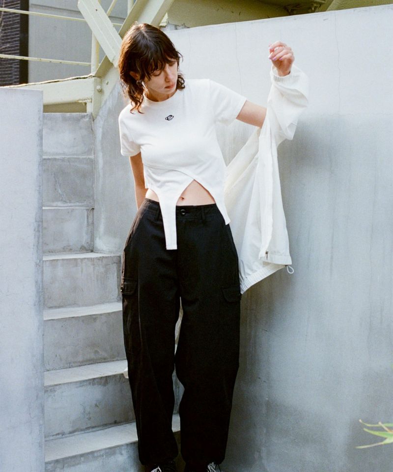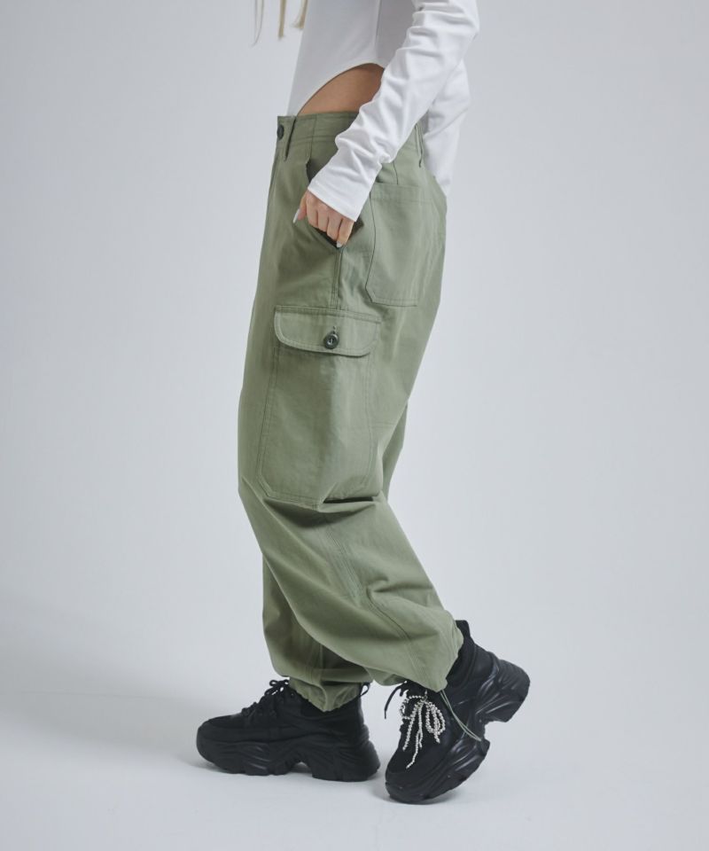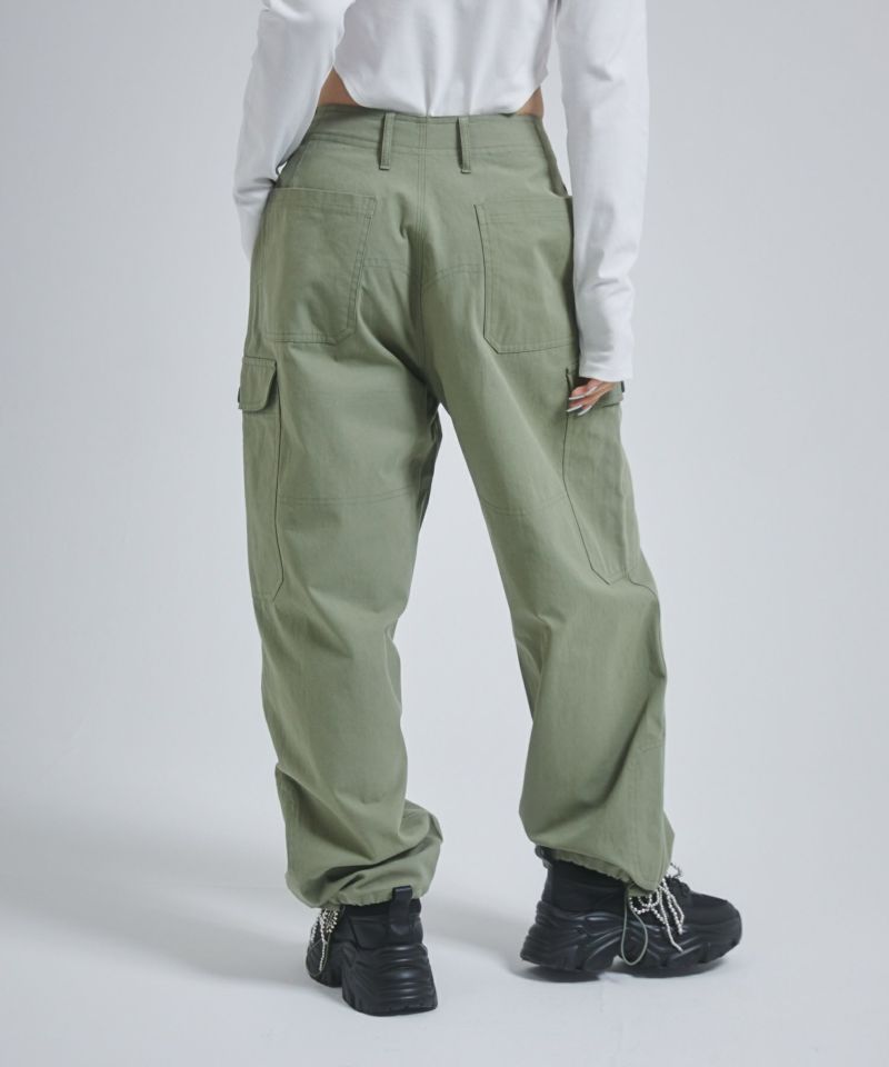 ポケットや裾口のドローコード、イレギュラーなステッチ使いでデティールにこだわったカーゴパンツ。
