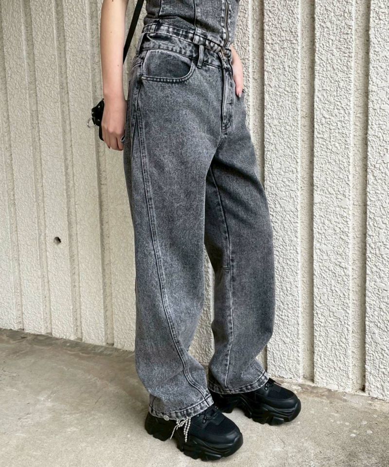 裾のボタンでシルエットが変更できる2WAYデニムが登場!