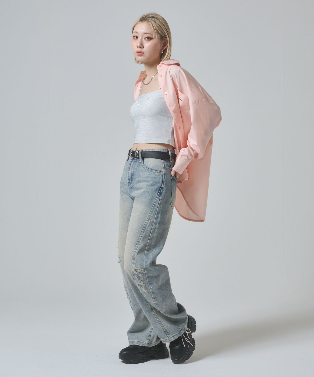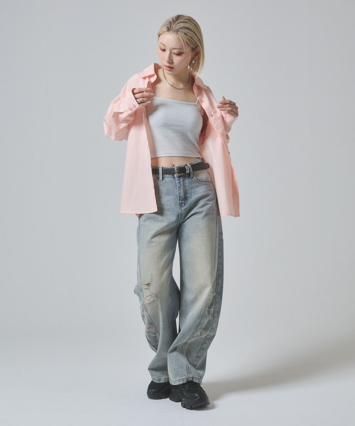 【70%OFF】 ブロードシャーリングビスチェノースリブラウス