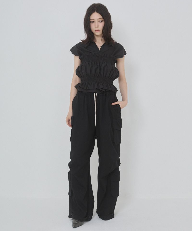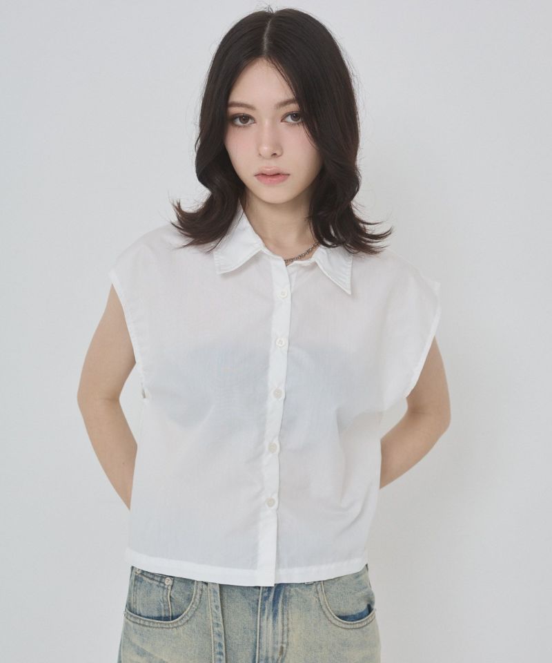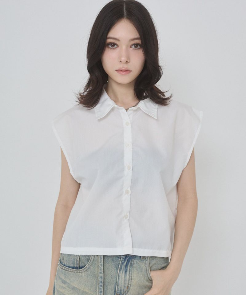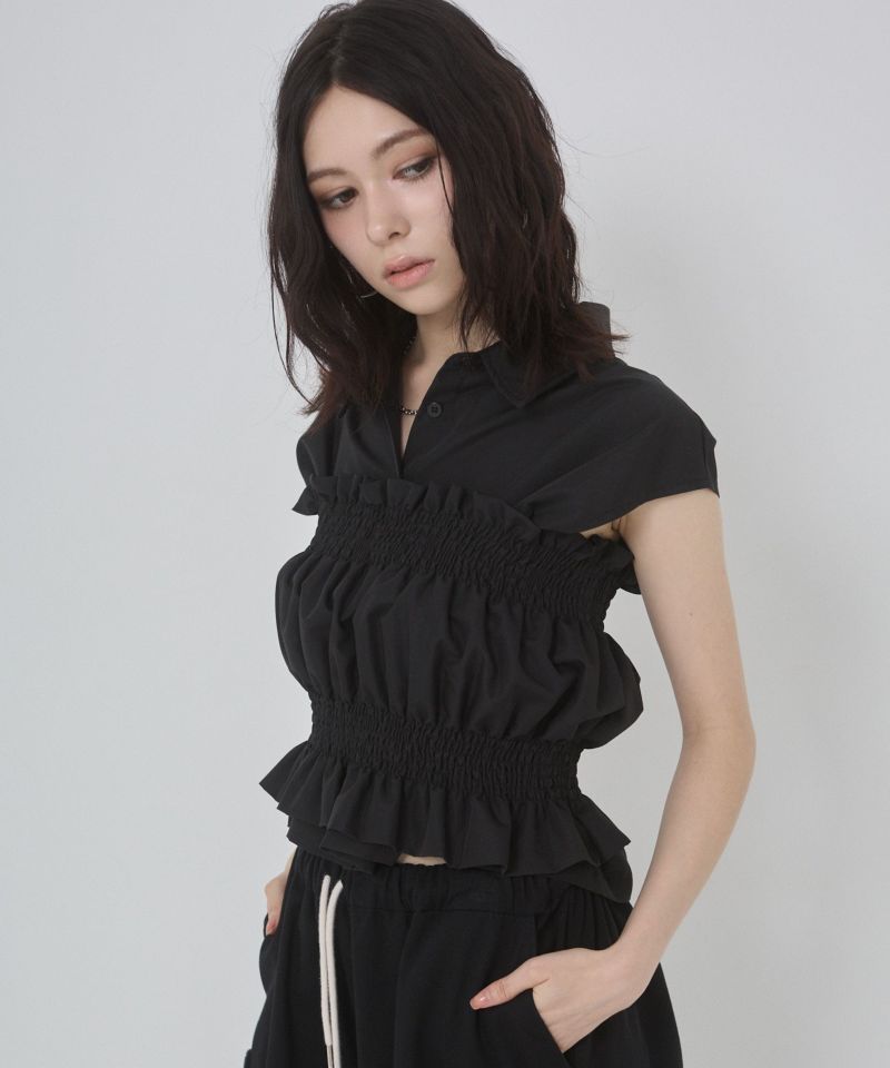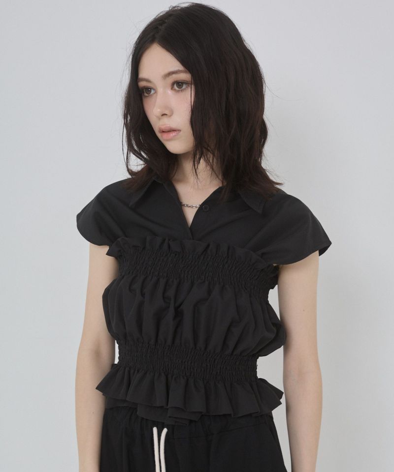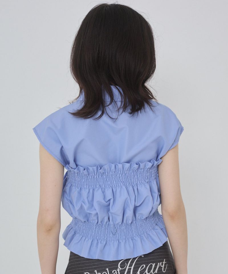 ノースリシャツとビスチェがセットになったアンサンブルブラウス。