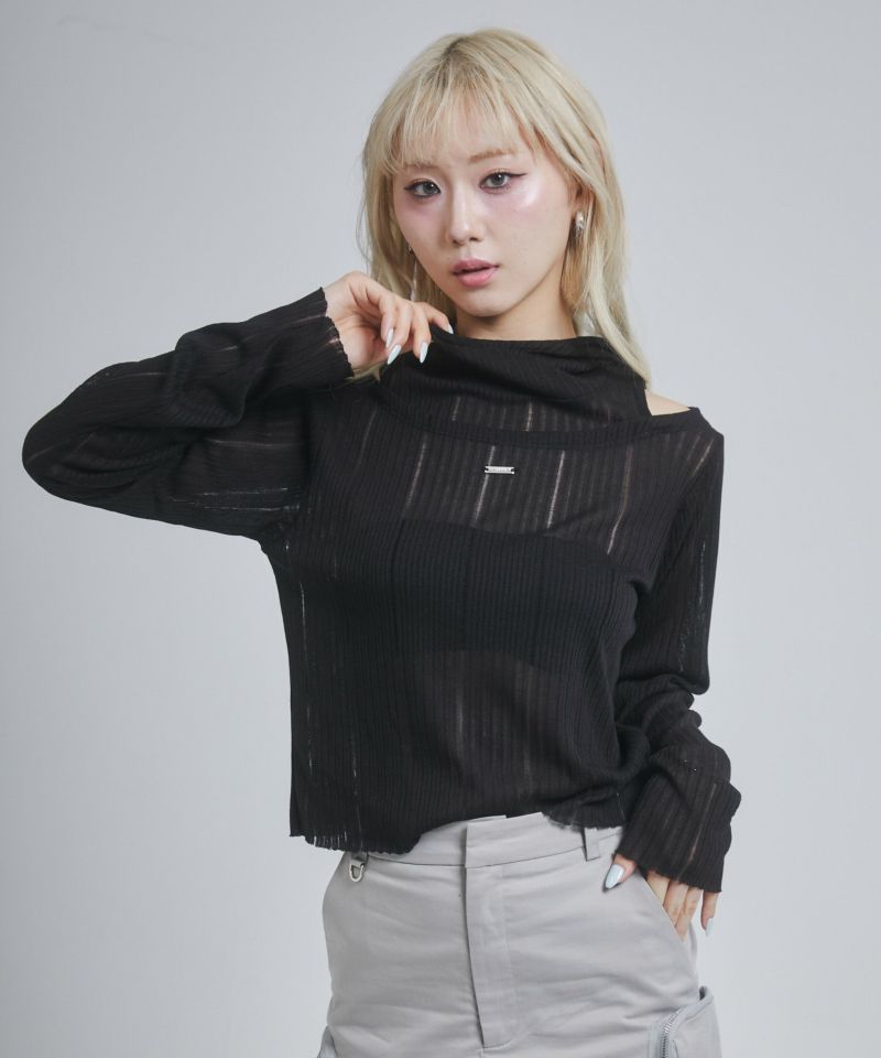 針抜きのような編み目でシアー感があるので春にぴったりなアイテムです。
