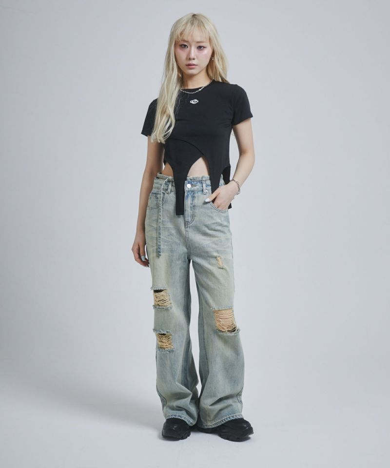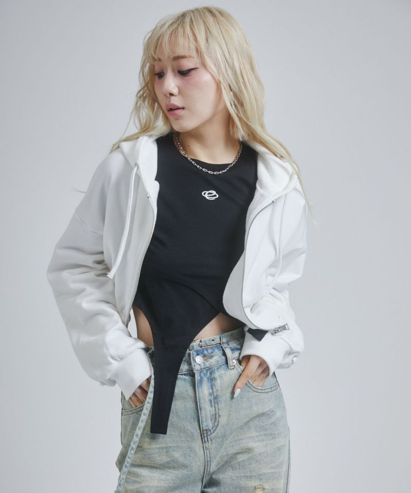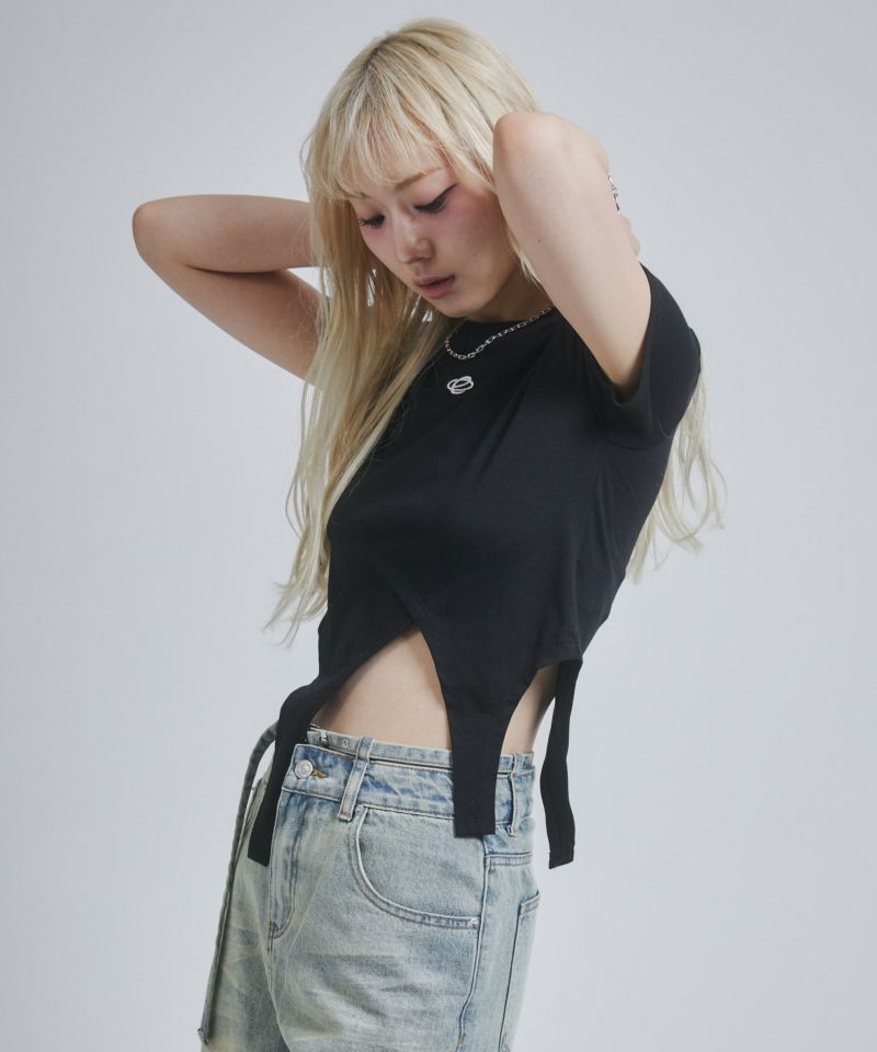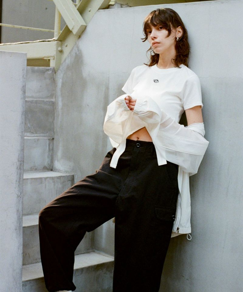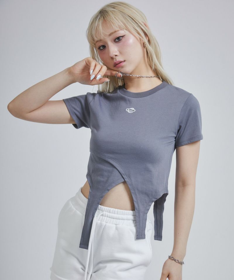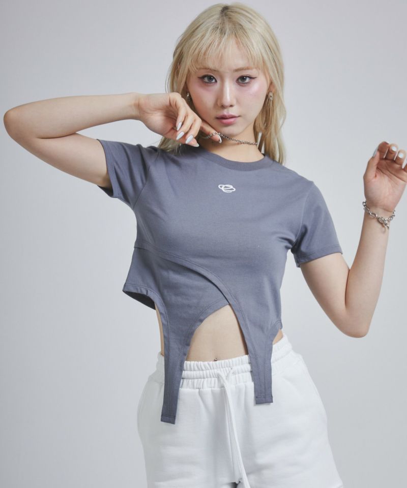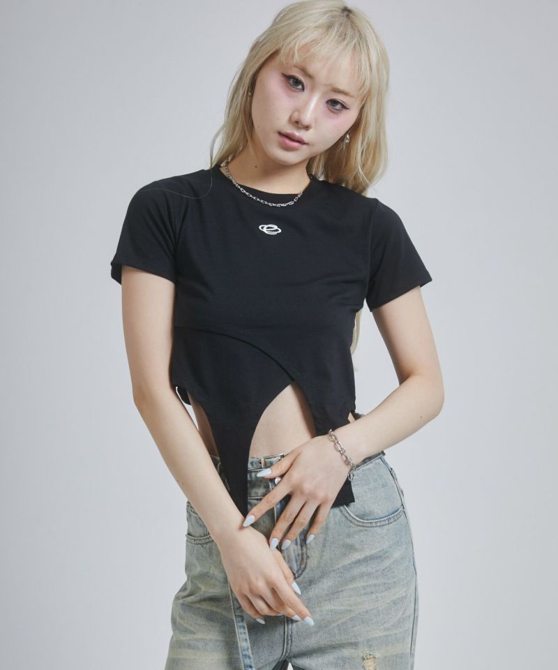 -------------------------------------------------- ■ポイント 裾のデザイン性がポイントのコンパクトTシャツ! ■ディティール Tシャツを2枚重ねてきているようなデティールが一癖ありポイントなTシャツ。 裾は変形にして他にはないアイテムに。 フロントにはオリジナルワンポイントを刺繍しています。 ■スタイリング ショート丈なので、肌みせを控えたい方はハイウエストボトムと合わせるのが◎ アウターのインナー使いにもおすすめです。 --------------------------------------------------