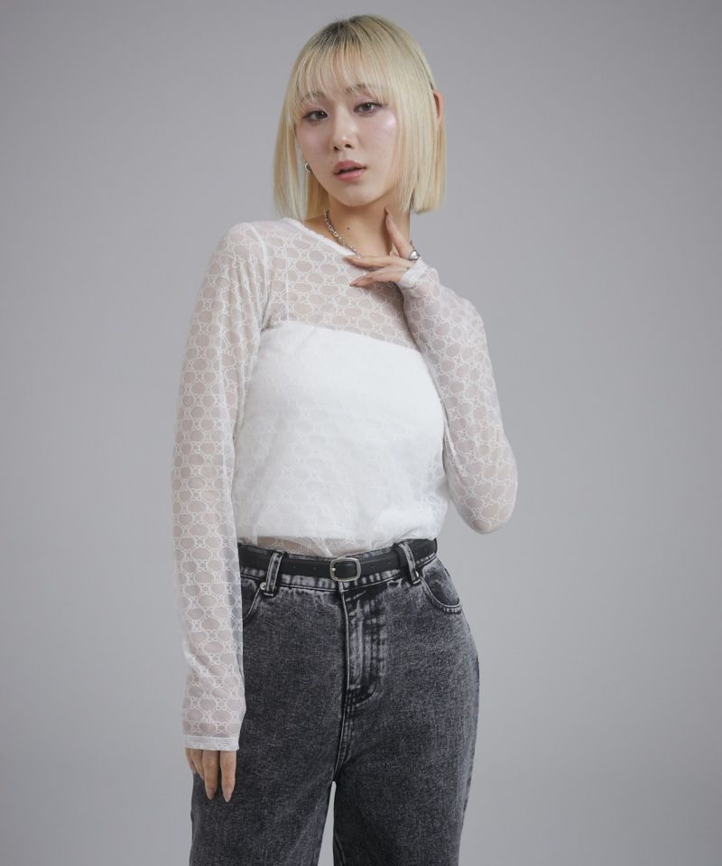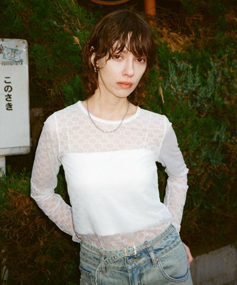-------------------------------------------------- ■ポイント 他にはない独特なレースのような柄がアクセントになるシアートップス! ■ディティール ストレッチ性がありフィット感のあるシアートップスは、 ひとつ持っておくとスタイリングの幅が広がります。 バックは泪開きにたことで着用しやすくしました◎ ■スタイリング Tシャツレイヤードがおすすめ! シンプルなスタイリングが一気にこなれ感がプラスされます! --------------------------------------------------