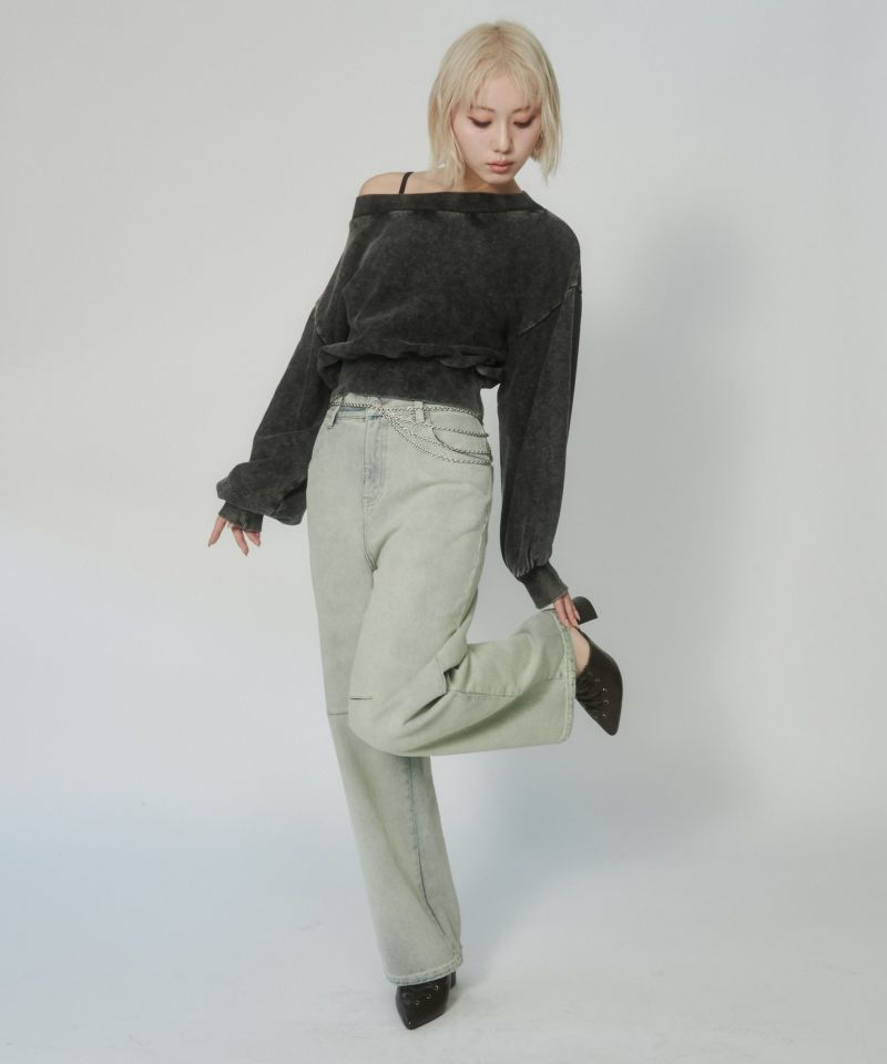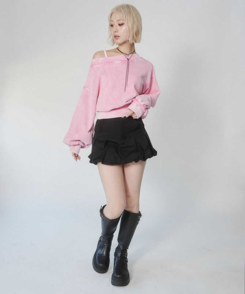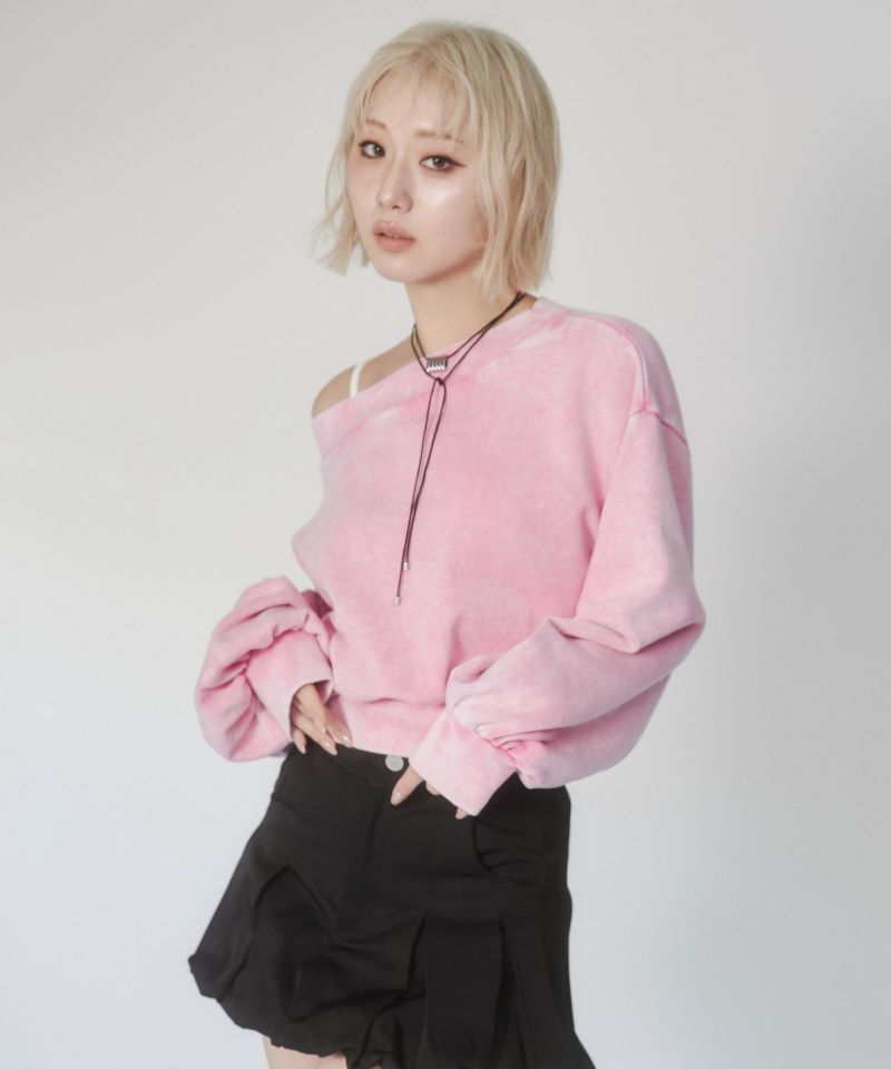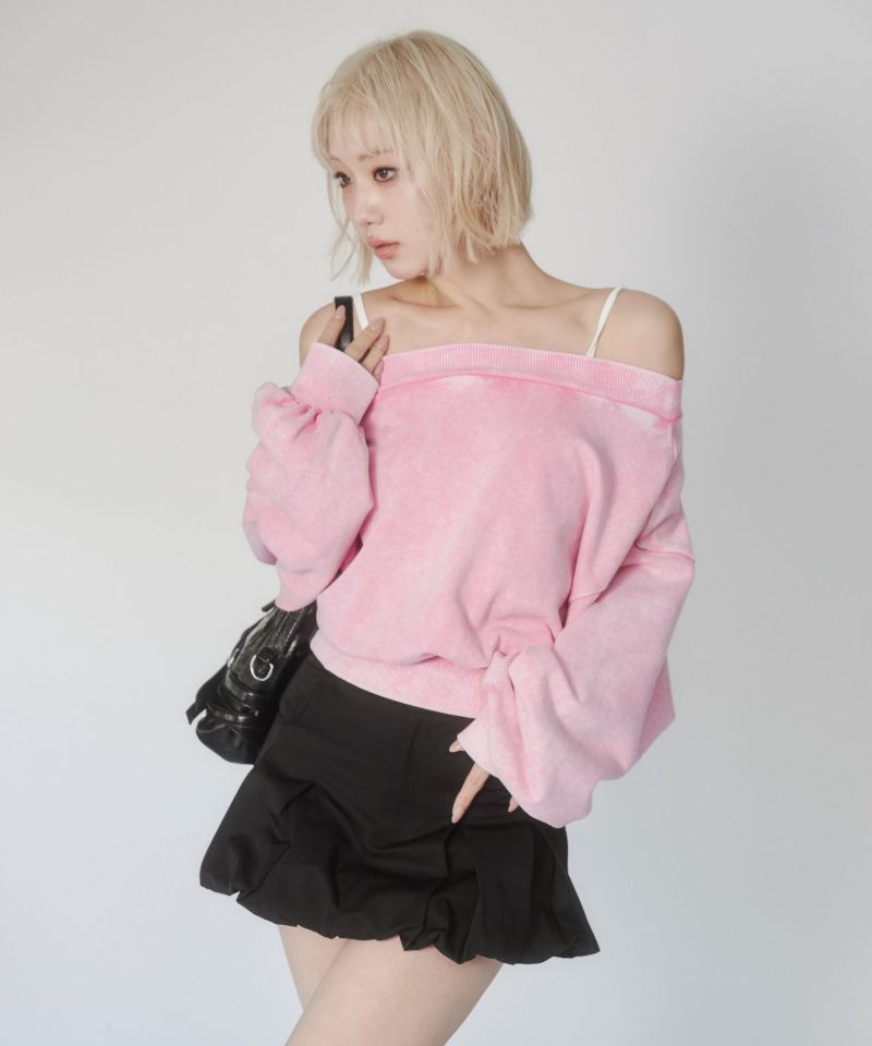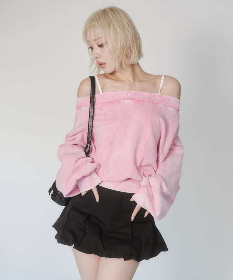 ボートネックにしたことで、オフショルやワンショルでも着用できるようになっています。