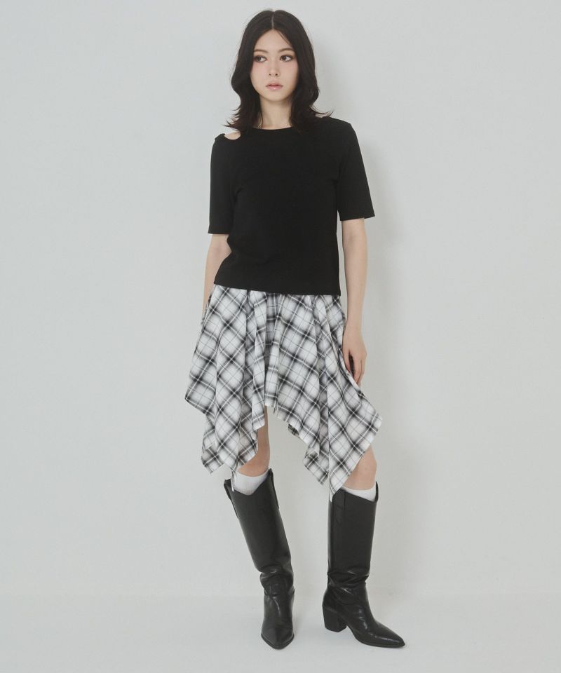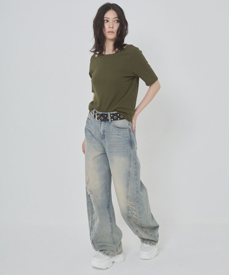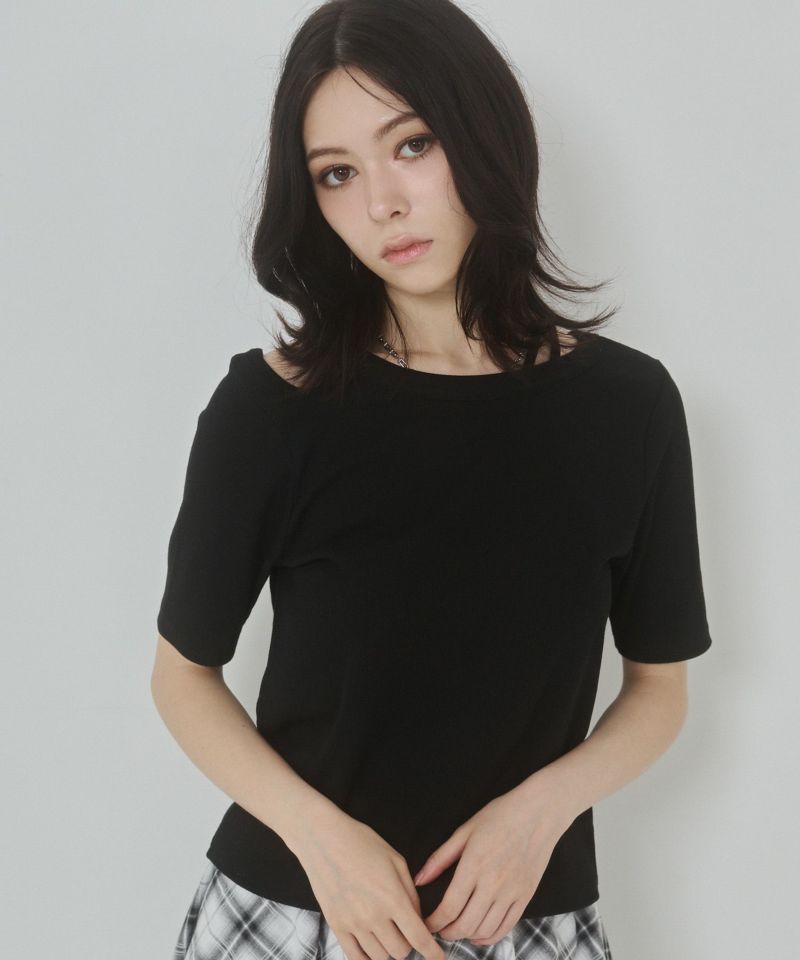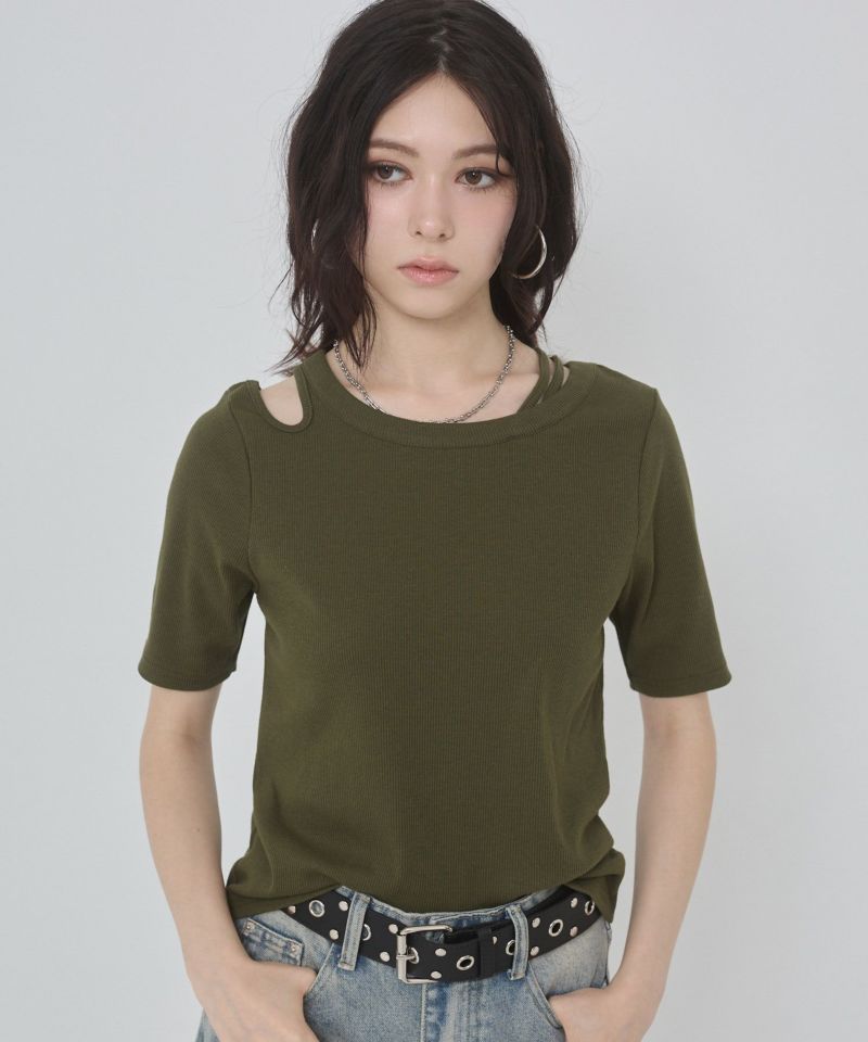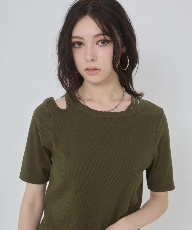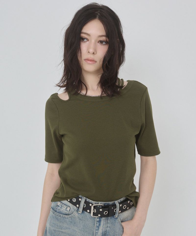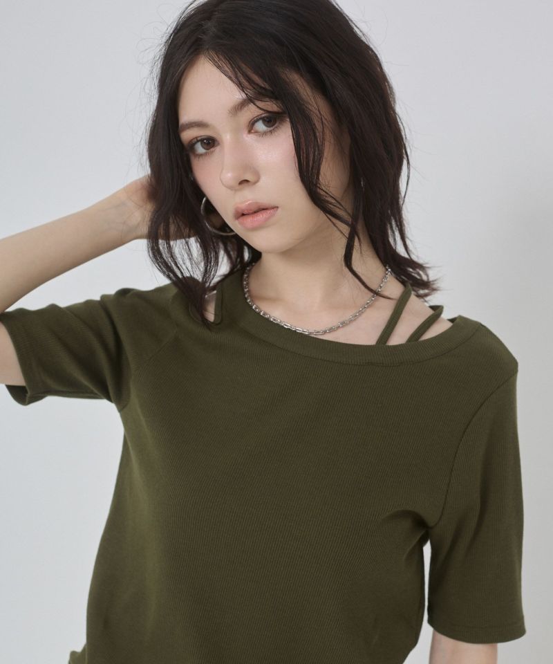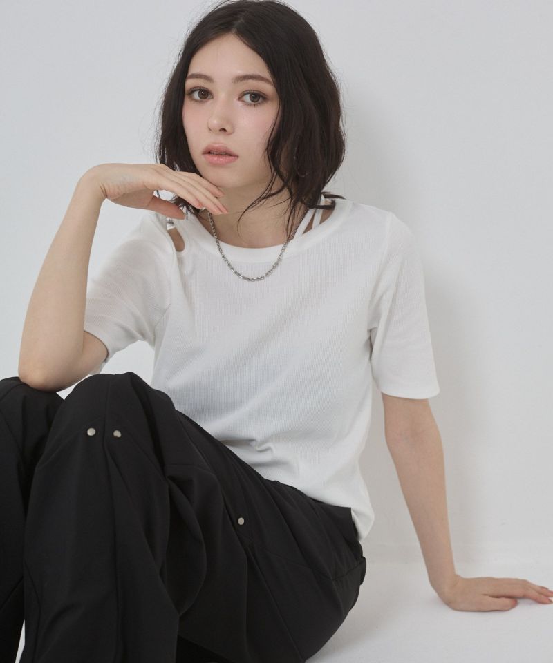 ネック周りのデザインがあることでシンプルに見えがちな夏にはピッタリのアイテム。