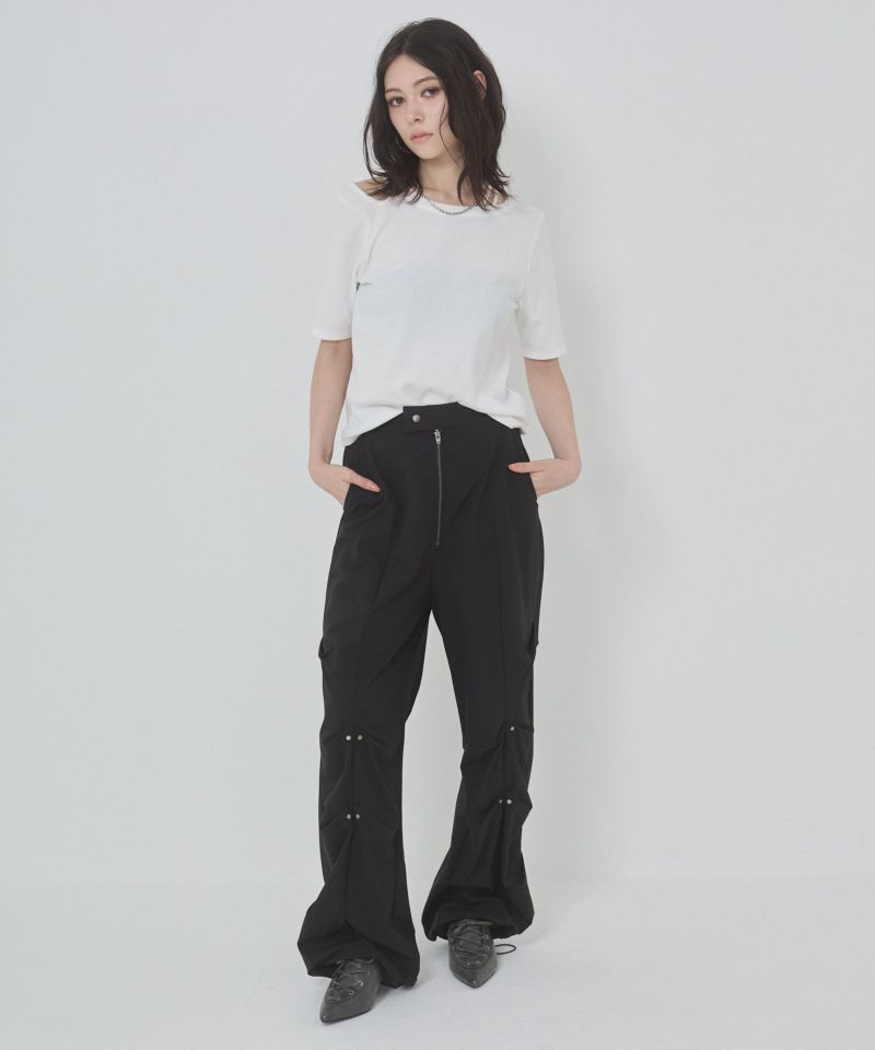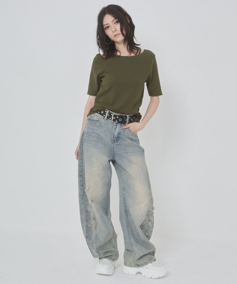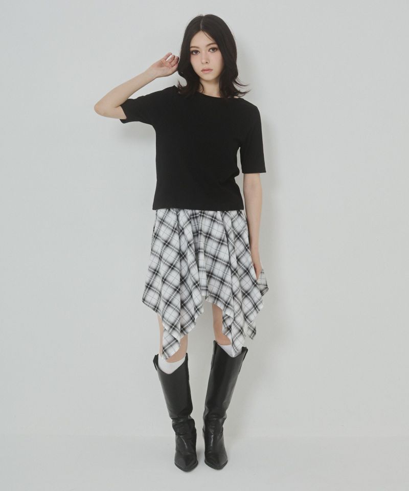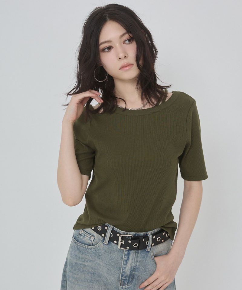 リブ生地なので綺麗めな雰囲気にも◎伸縮性があるのでストレスフリーです。