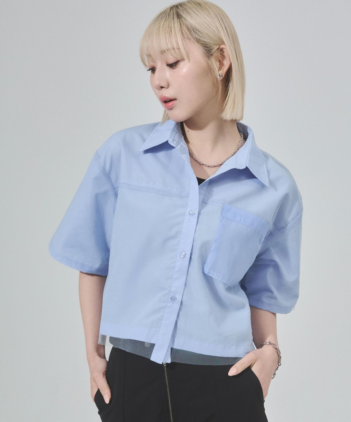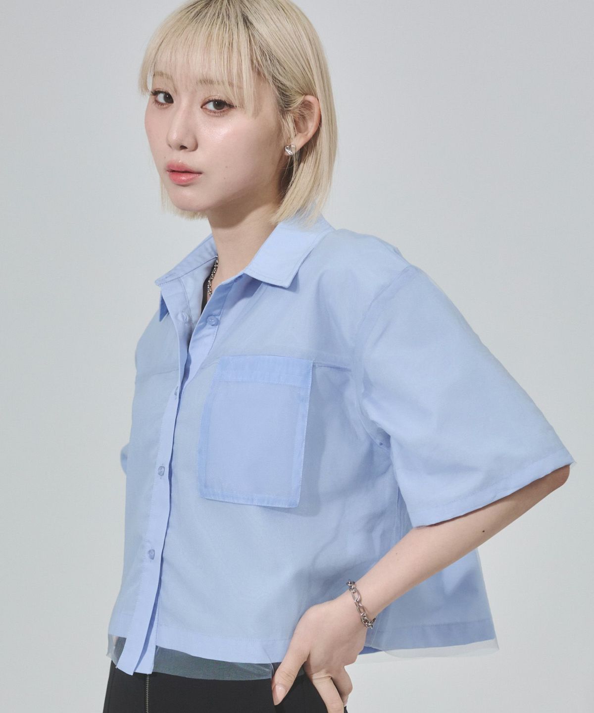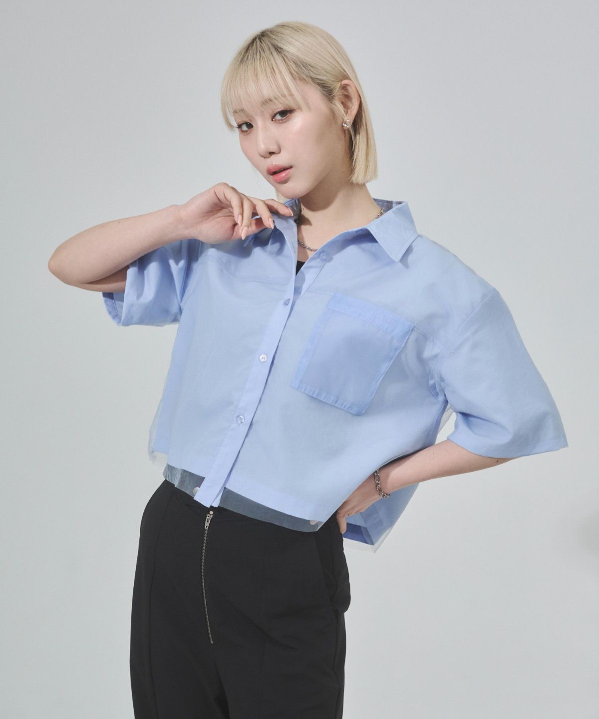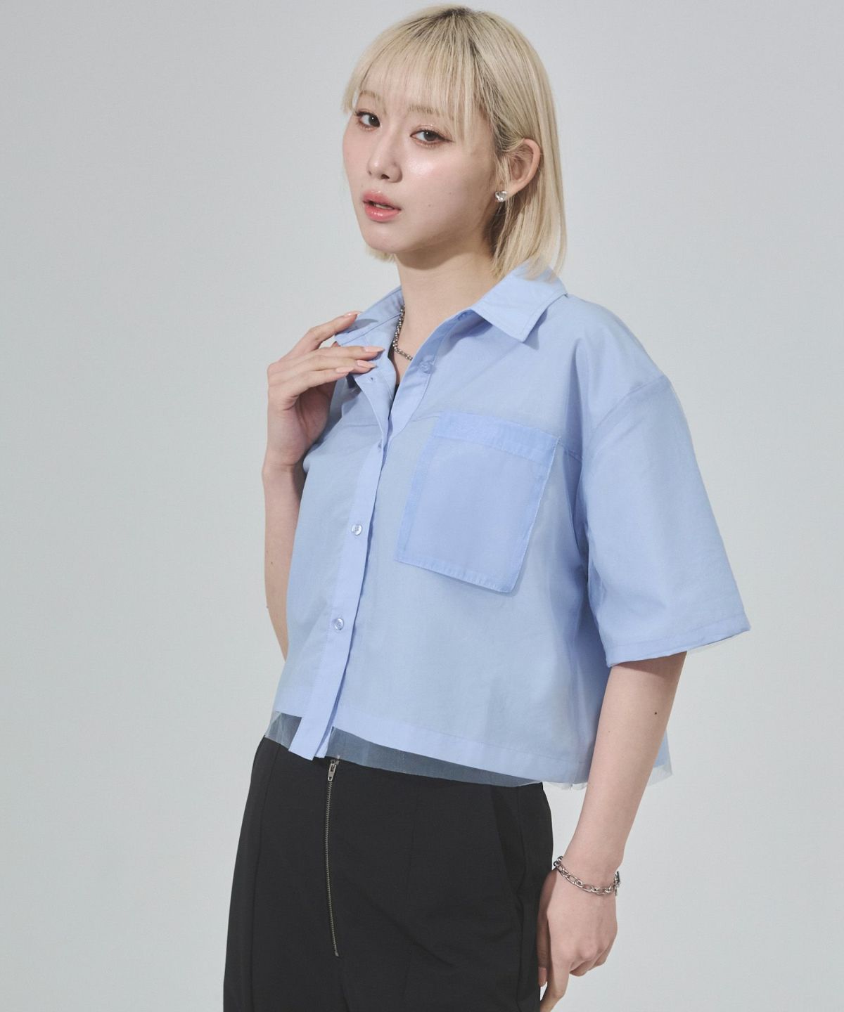 【70%OFF】 ブロード チュール被せ半袖シャツ