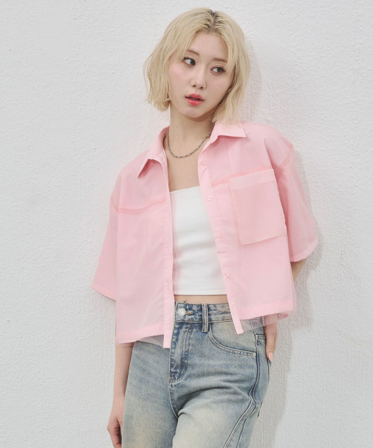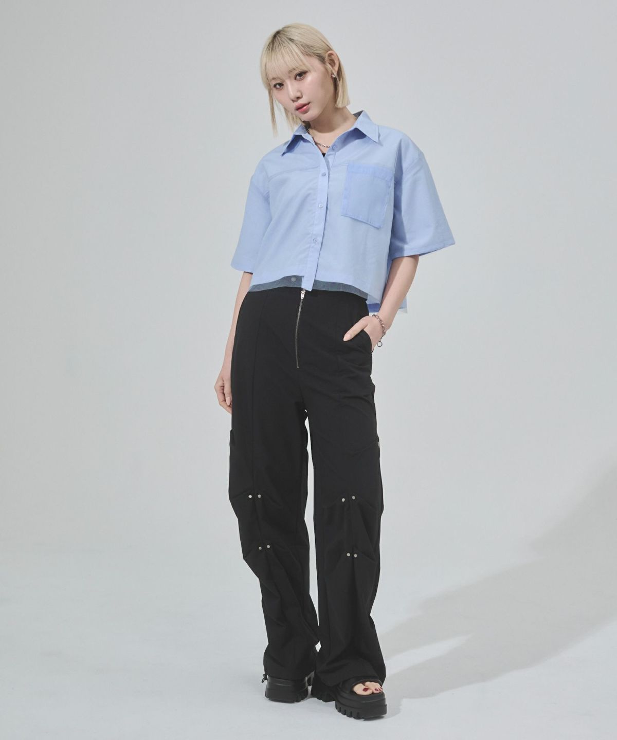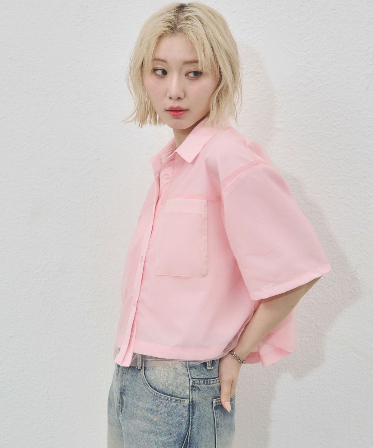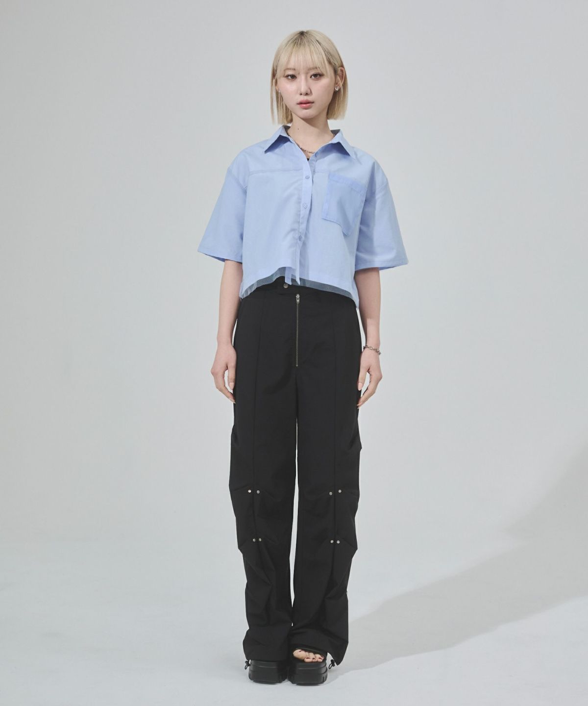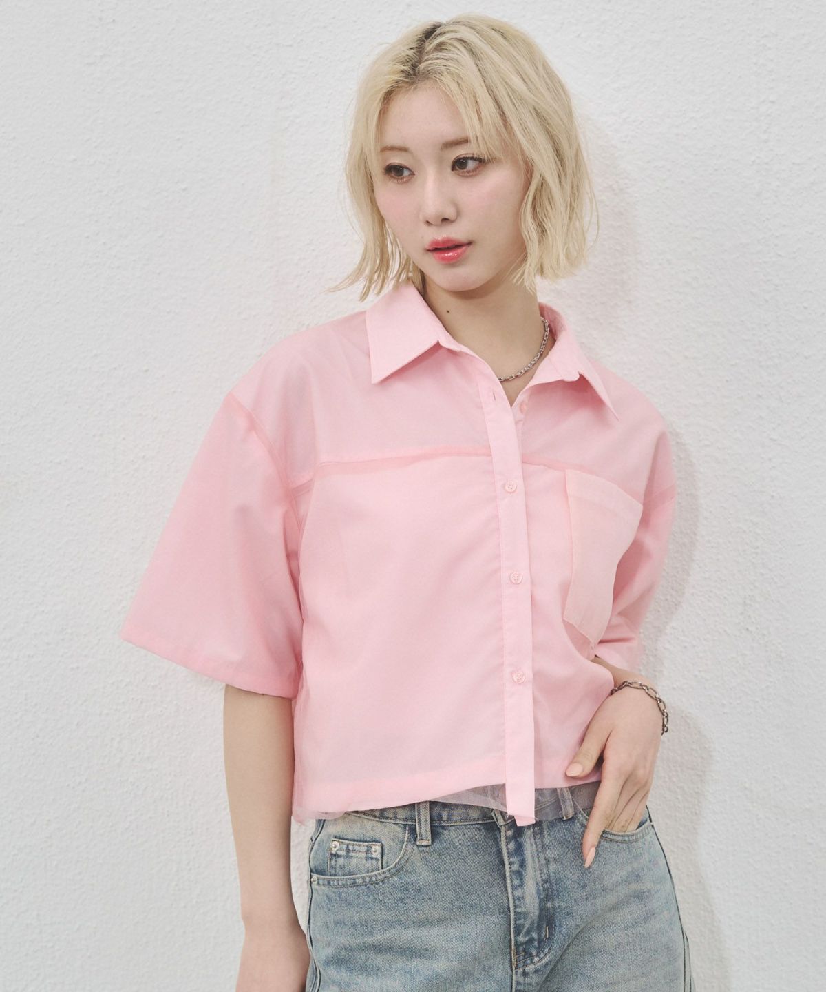 【70%OFF】 ブロード チュール被せ半袖シャツ