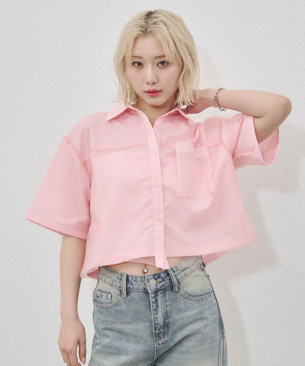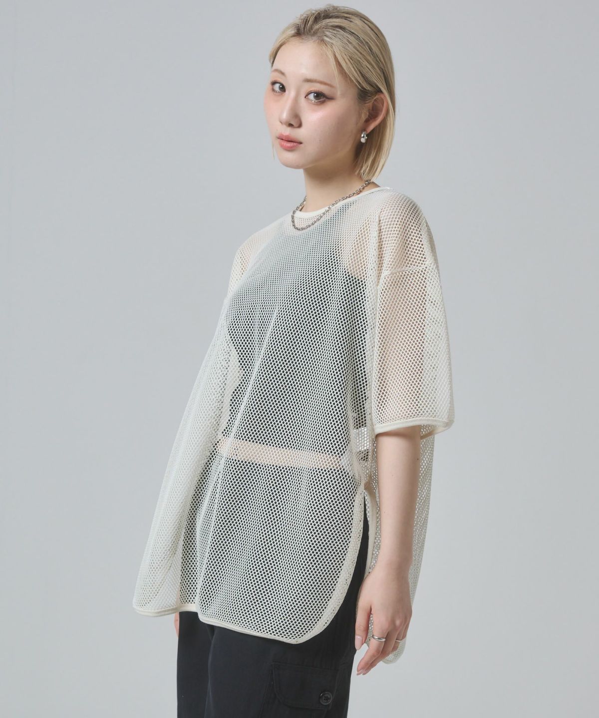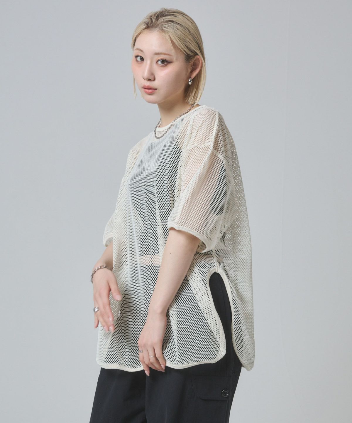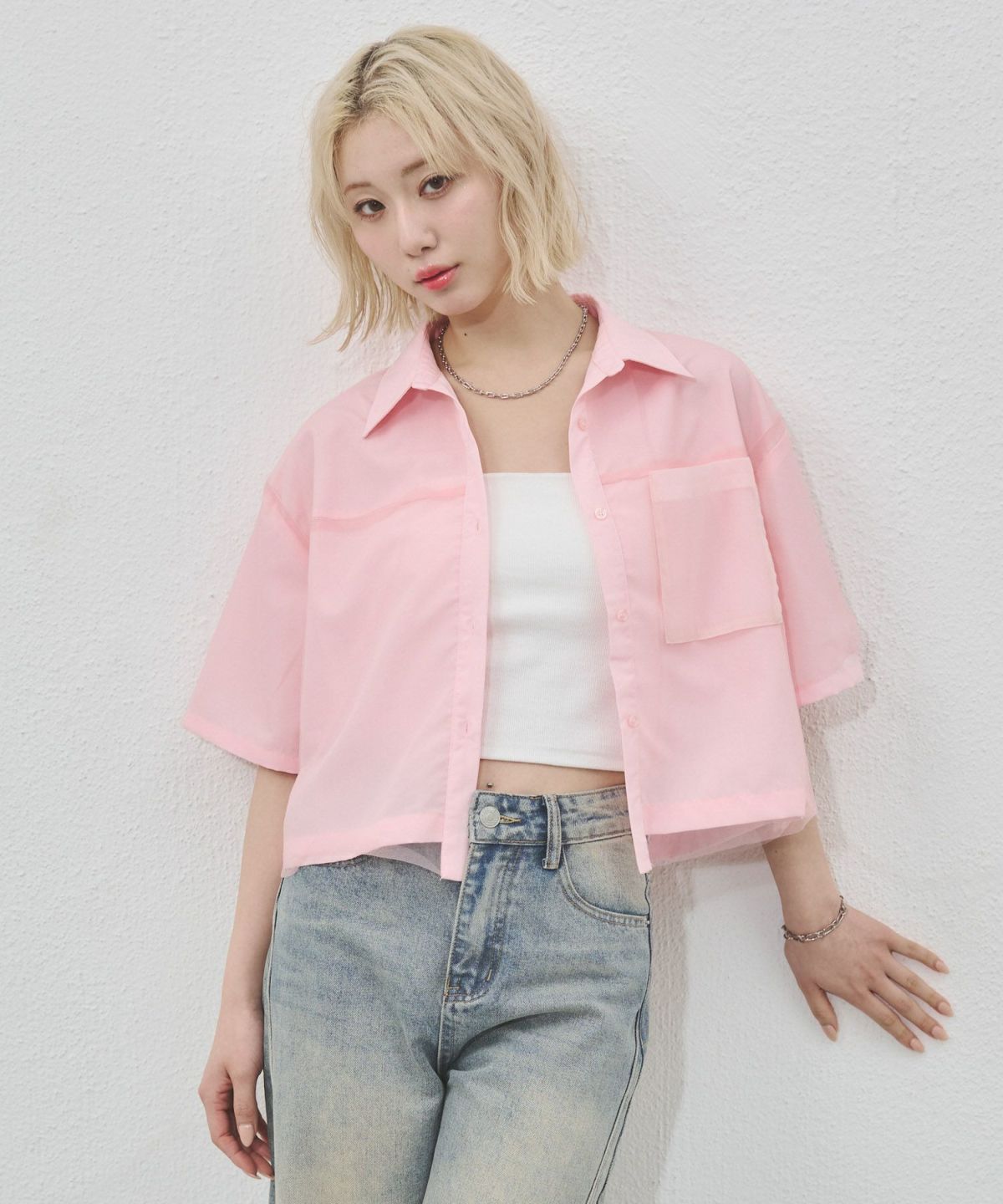 【70%OFF】 ブロード チュール被せ半袖シャツ