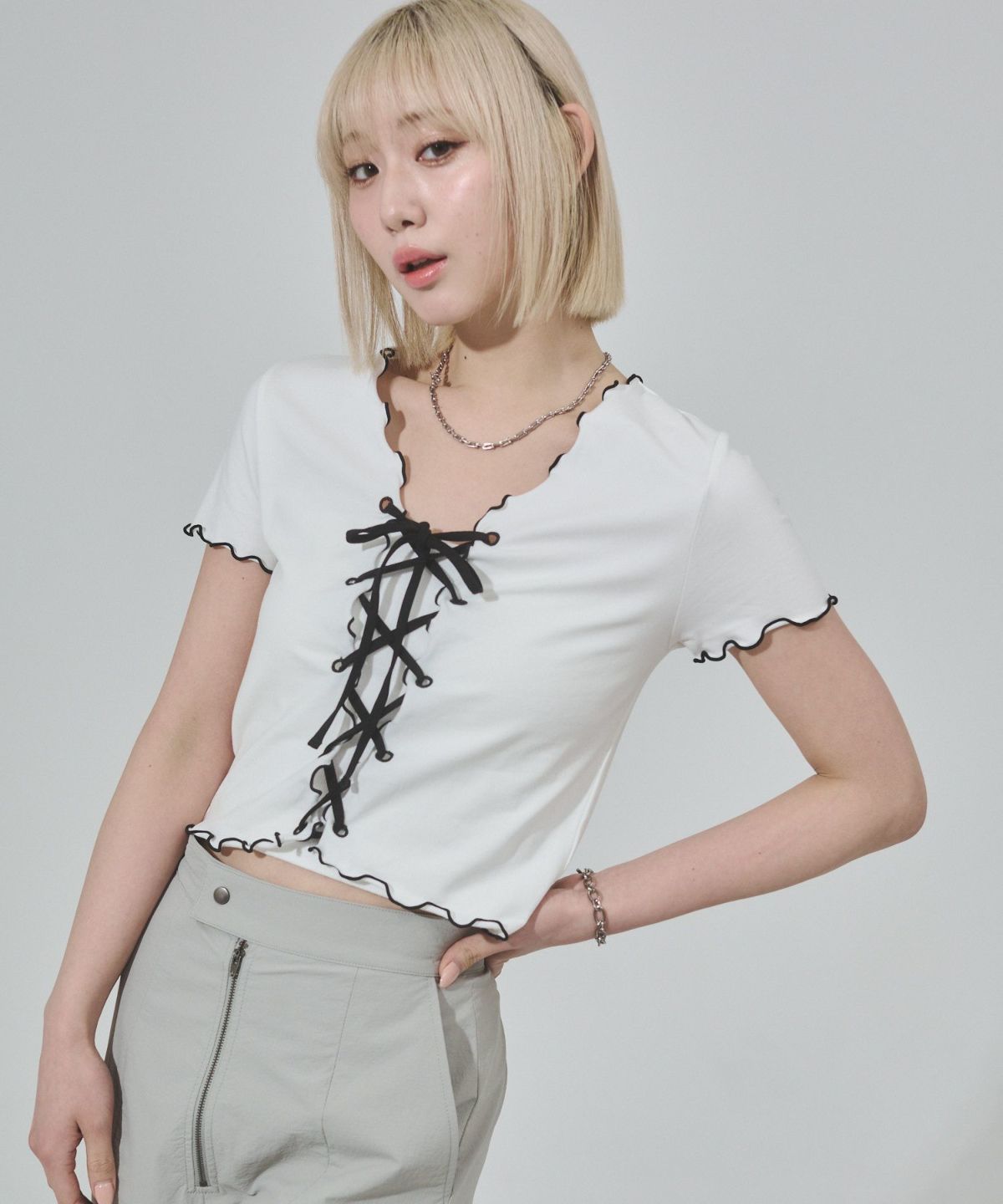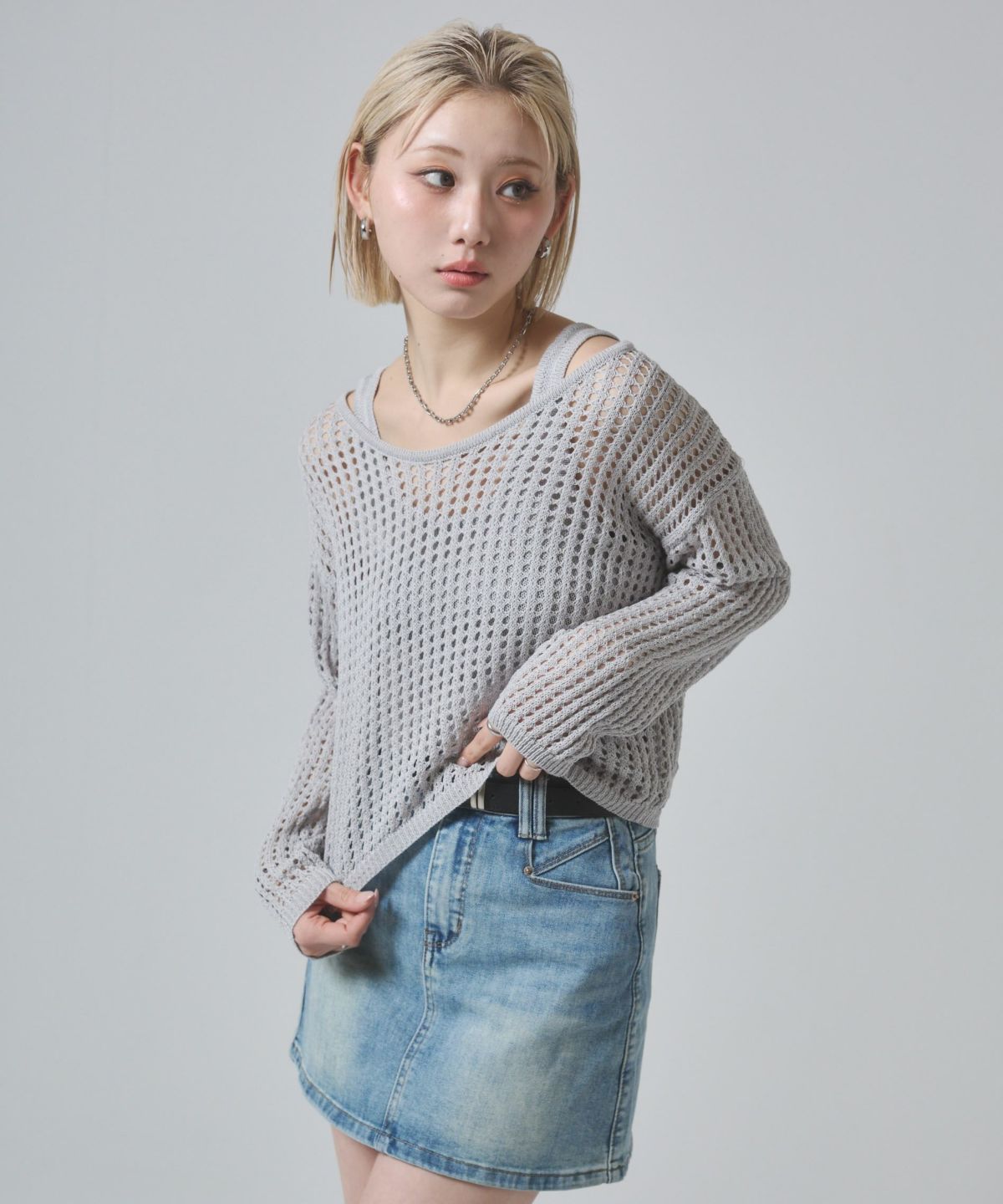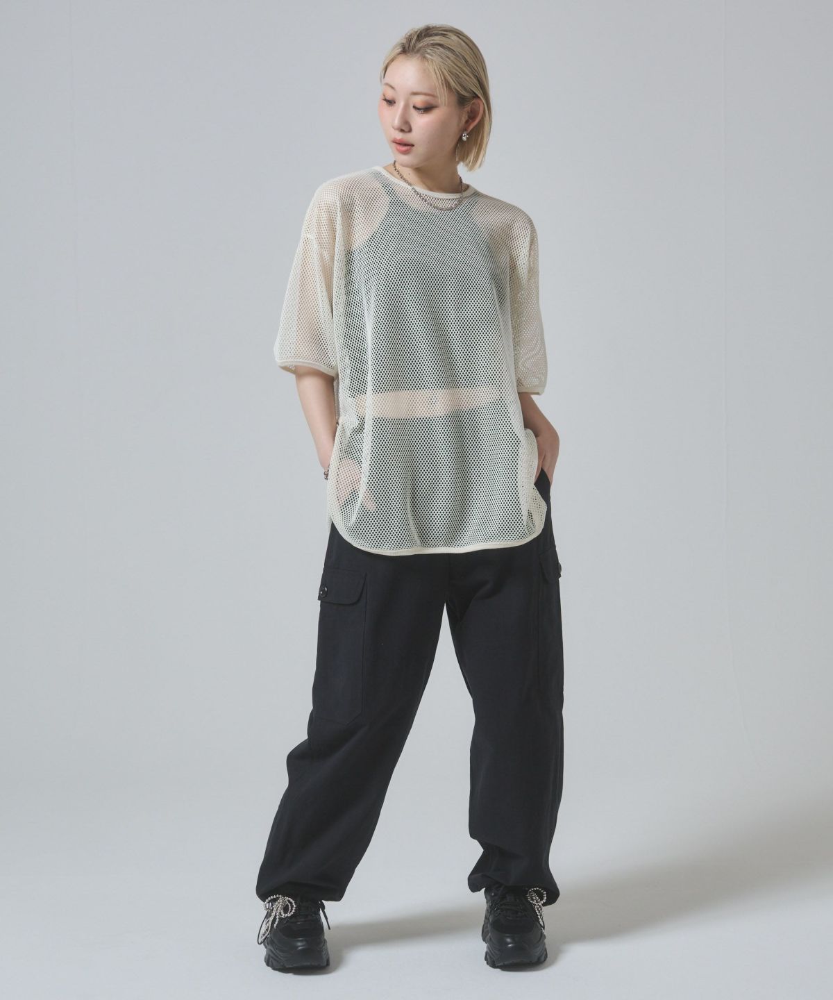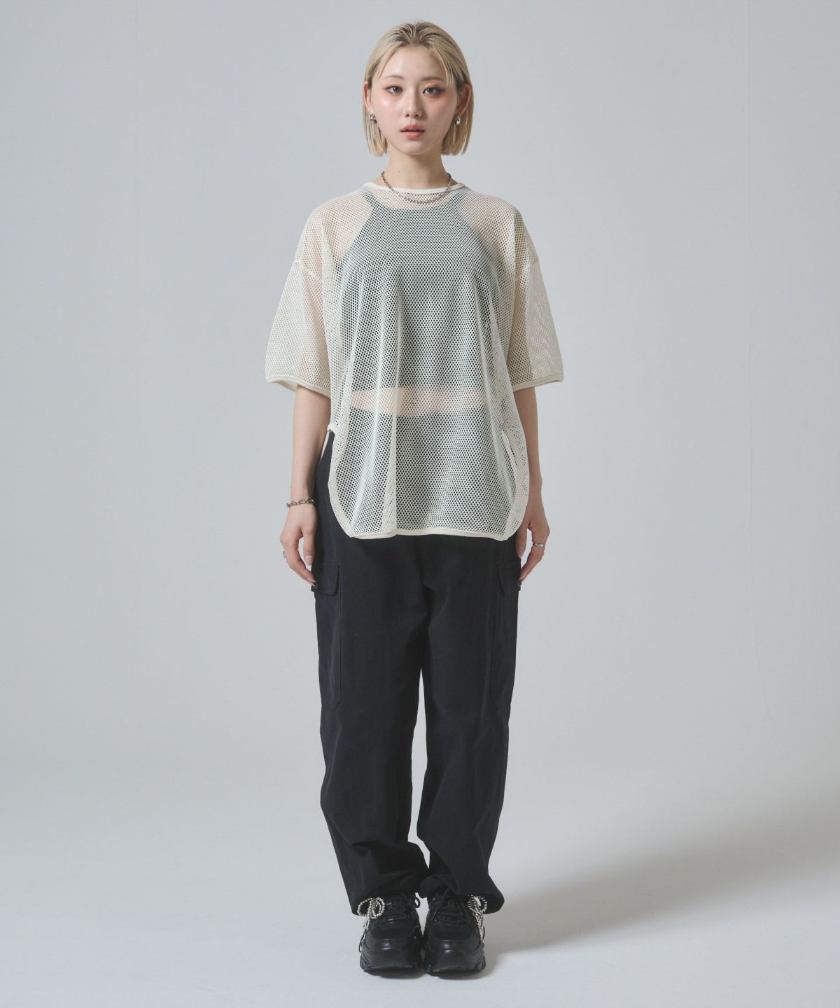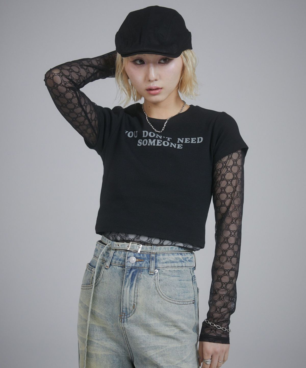 【70%OFF】 ブロード チュール被せ半袖シャツ