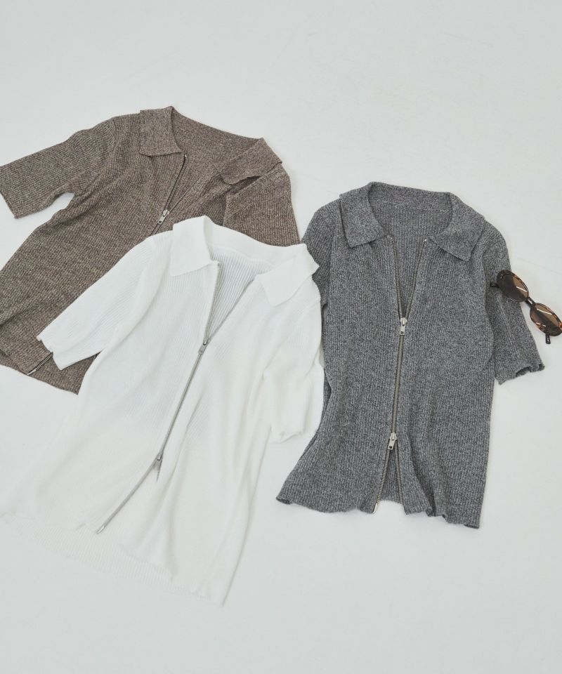 着回しやすいホワイト、こなれ感のあるメランジ糸を使用したブラウンとグレーの3色展開です。