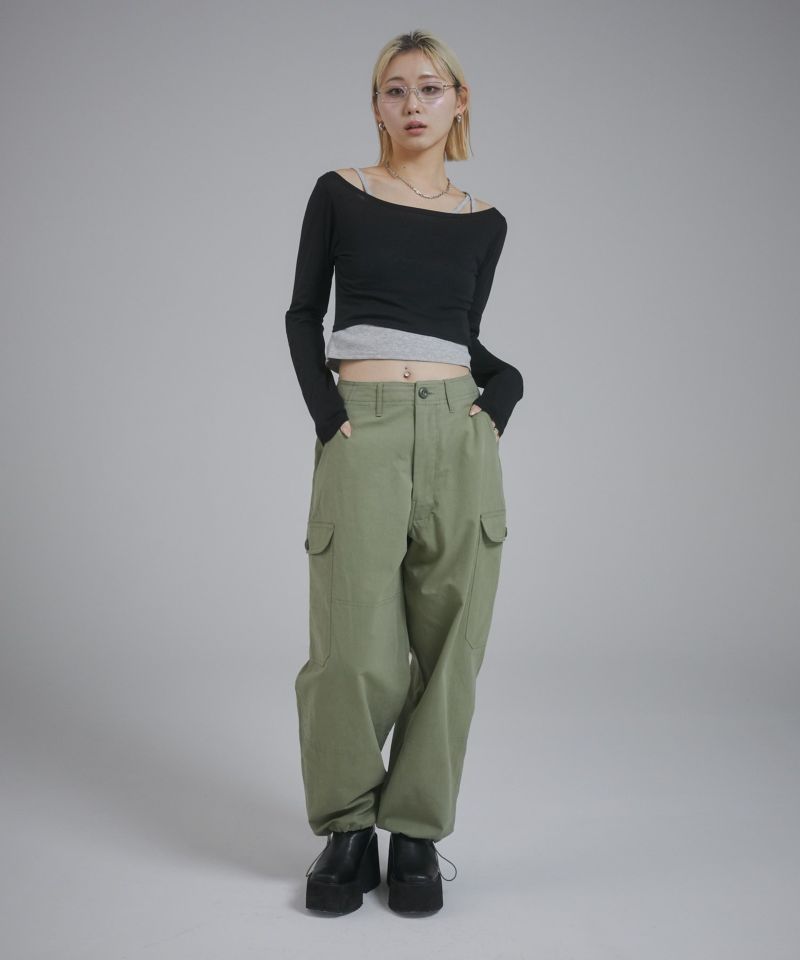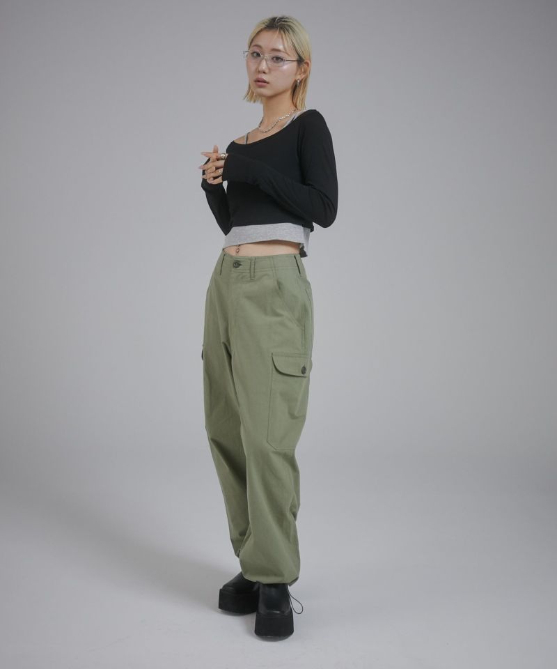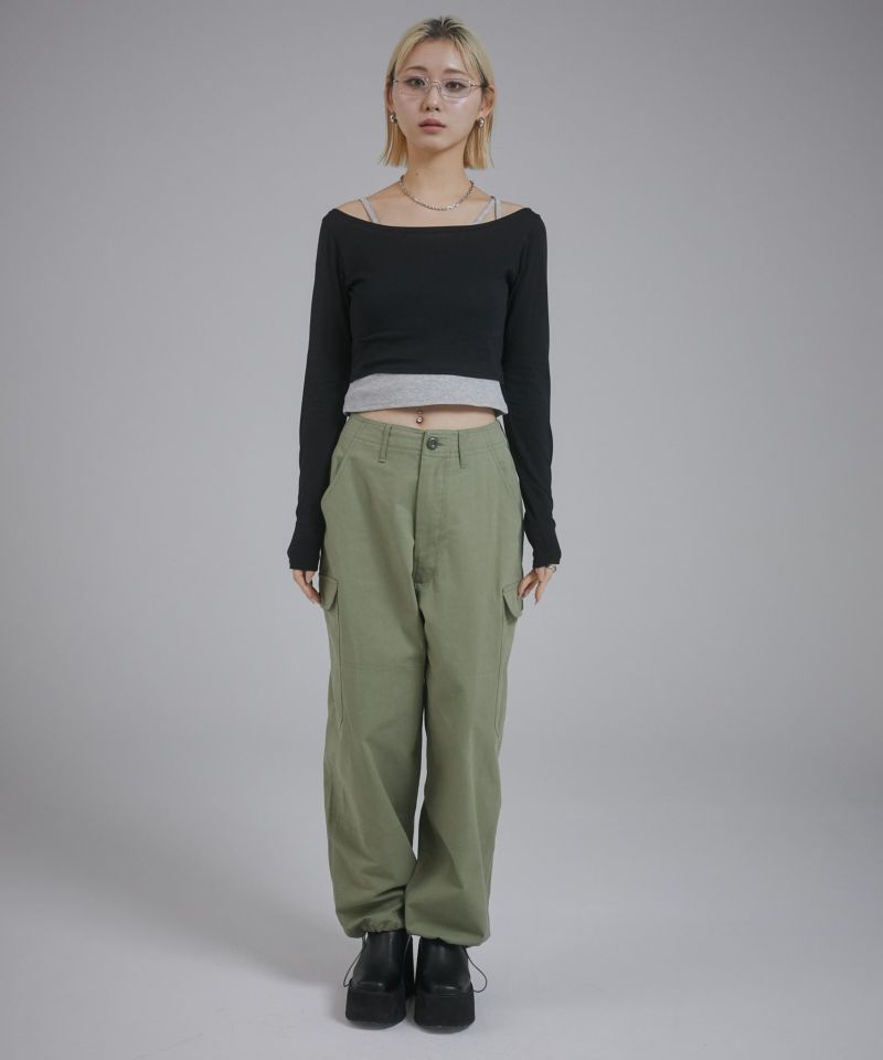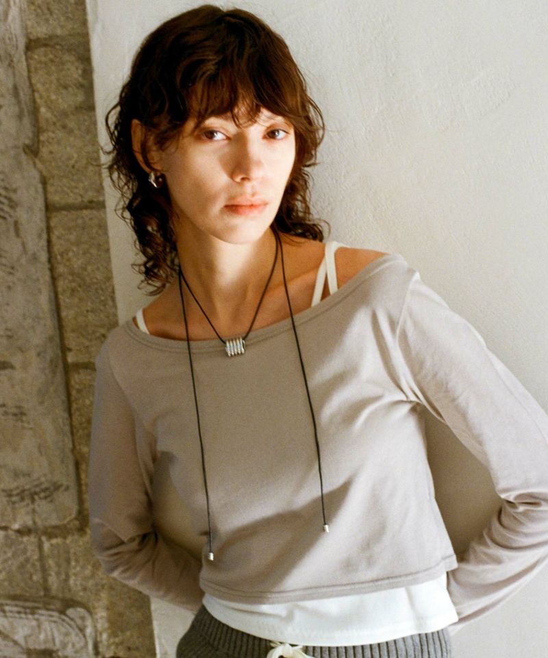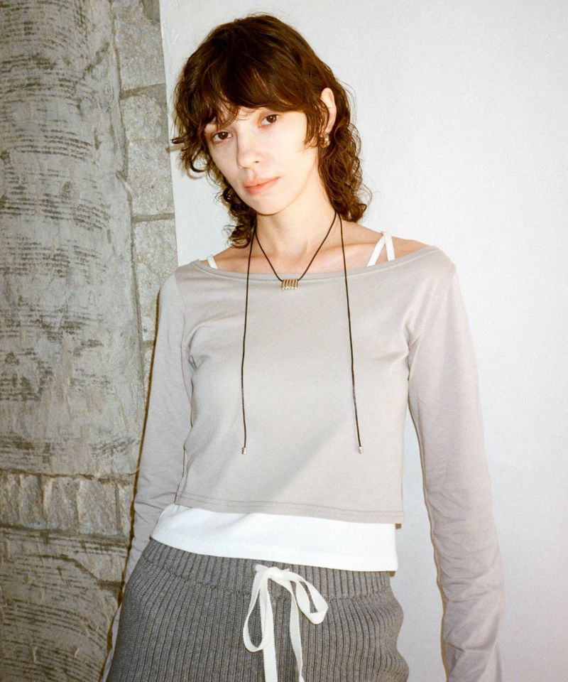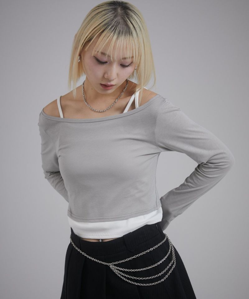 キャミソール部分はカットリブ、ロンT部分はシアー感のあるカットソーを使用しています。