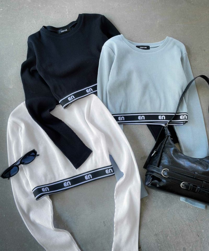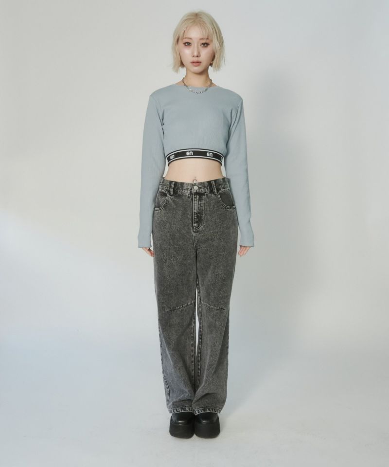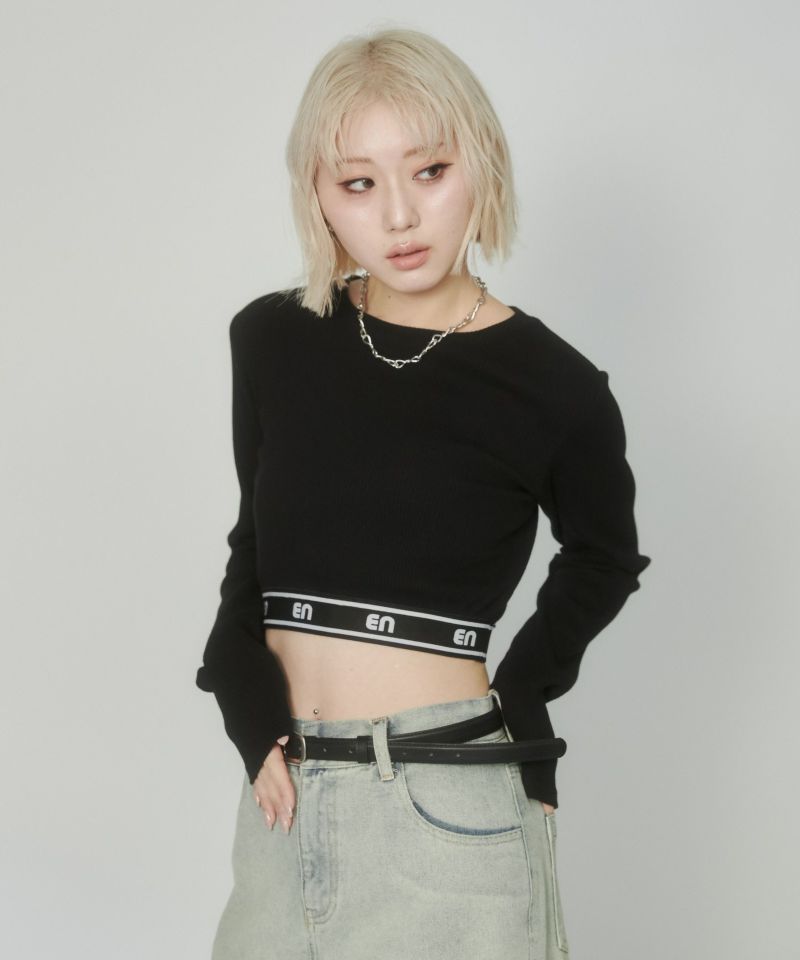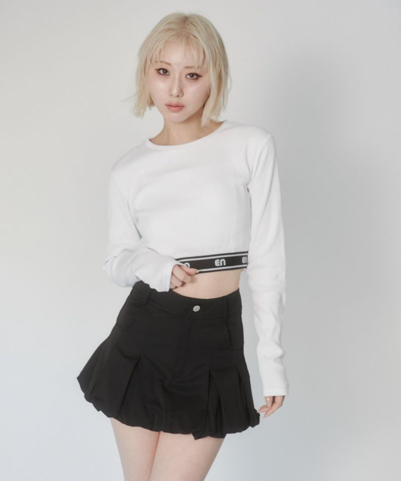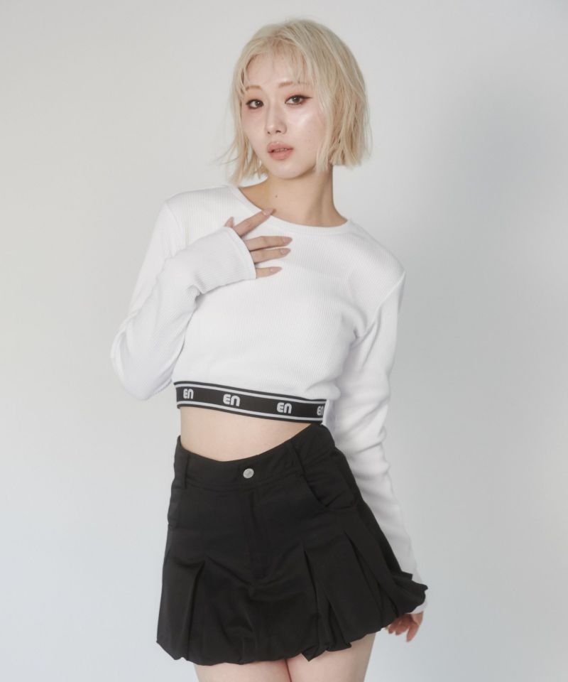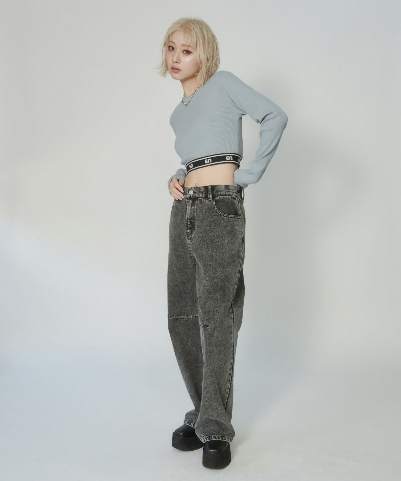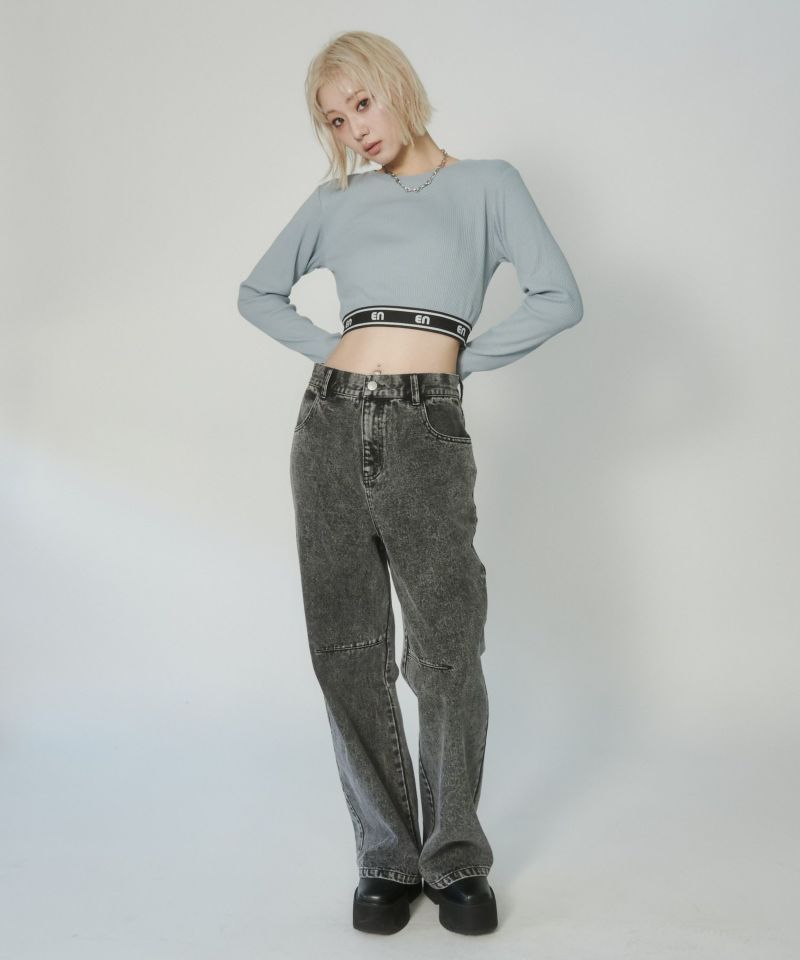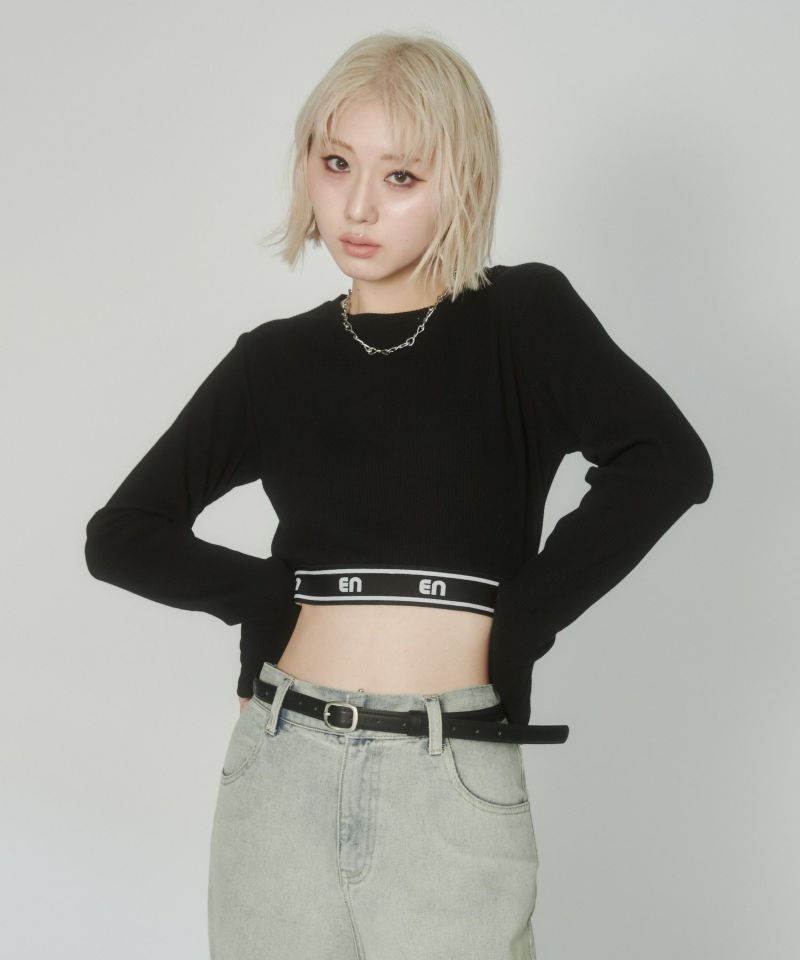 ショート丈なのでハイウエストボトムで合わせるとバランスよく着こなせます。