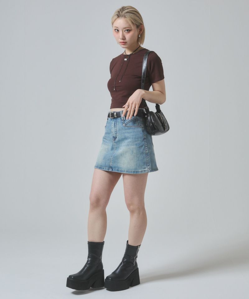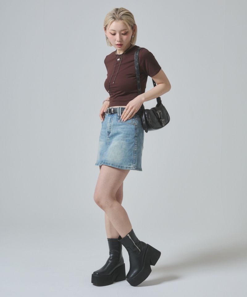 ミニボトム×ブーツでエッジの効いたスタイリングも◎