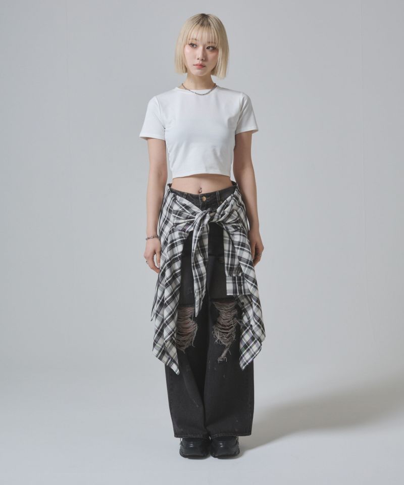 ショート丈なので自然とウエスト位置が高く見えスタイルアップ効果が期待できます!